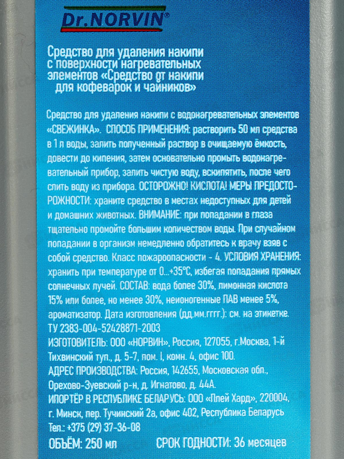 Dr.NORVIN Для удаления накипи в чайниках и кофемашинах 250мл *10