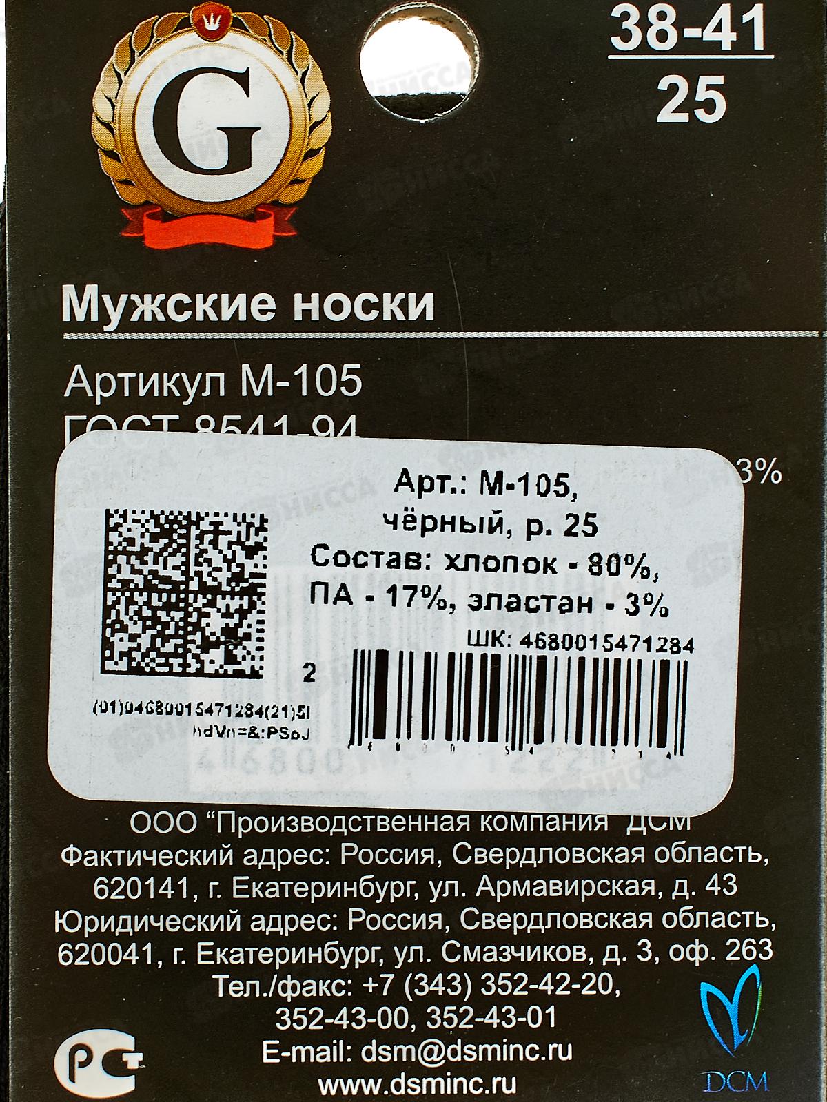 Носки муж М-105 GRAND LINE черный р-25