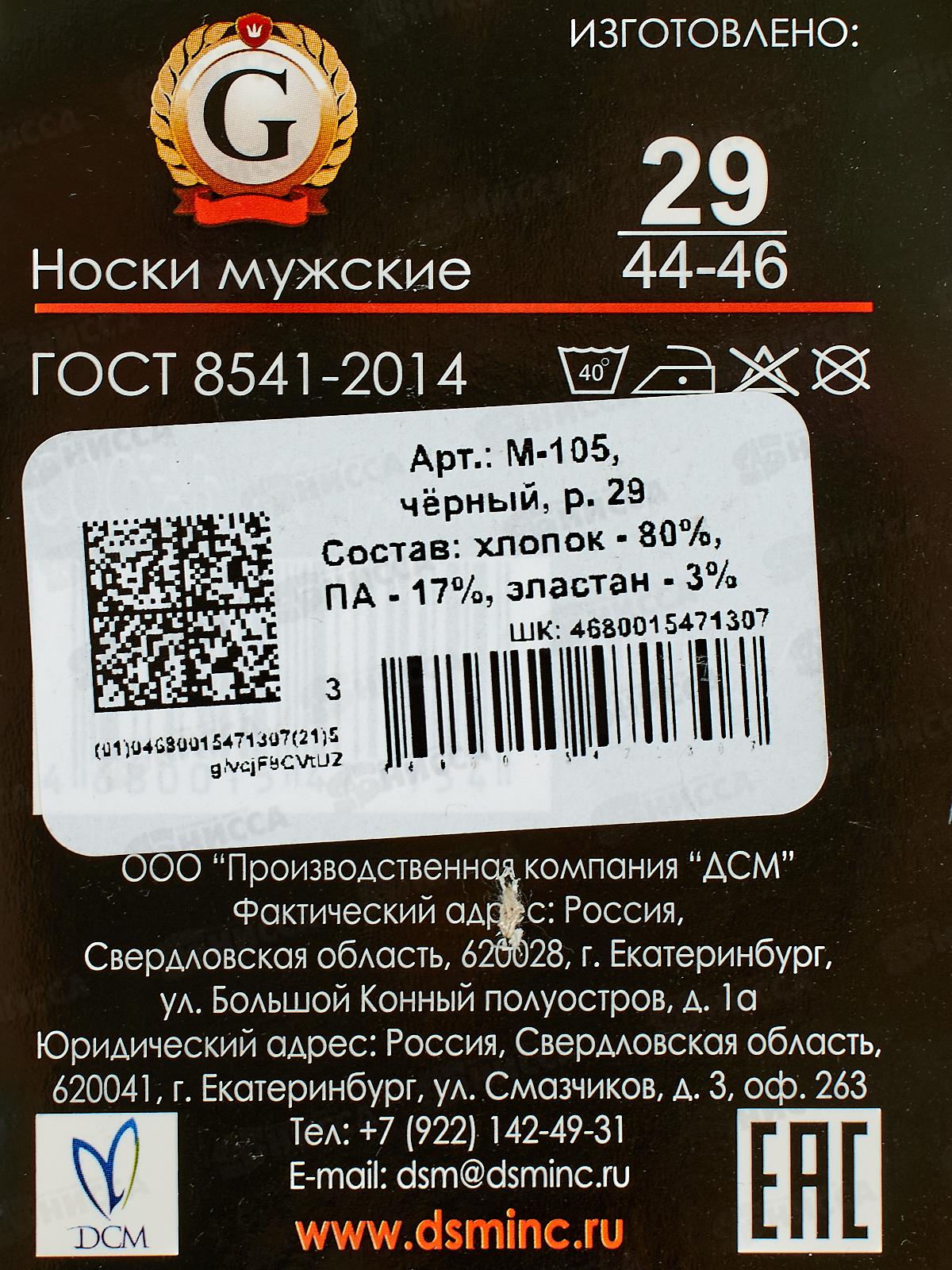 Носки муж М-105 GRAND LINE черный р-29