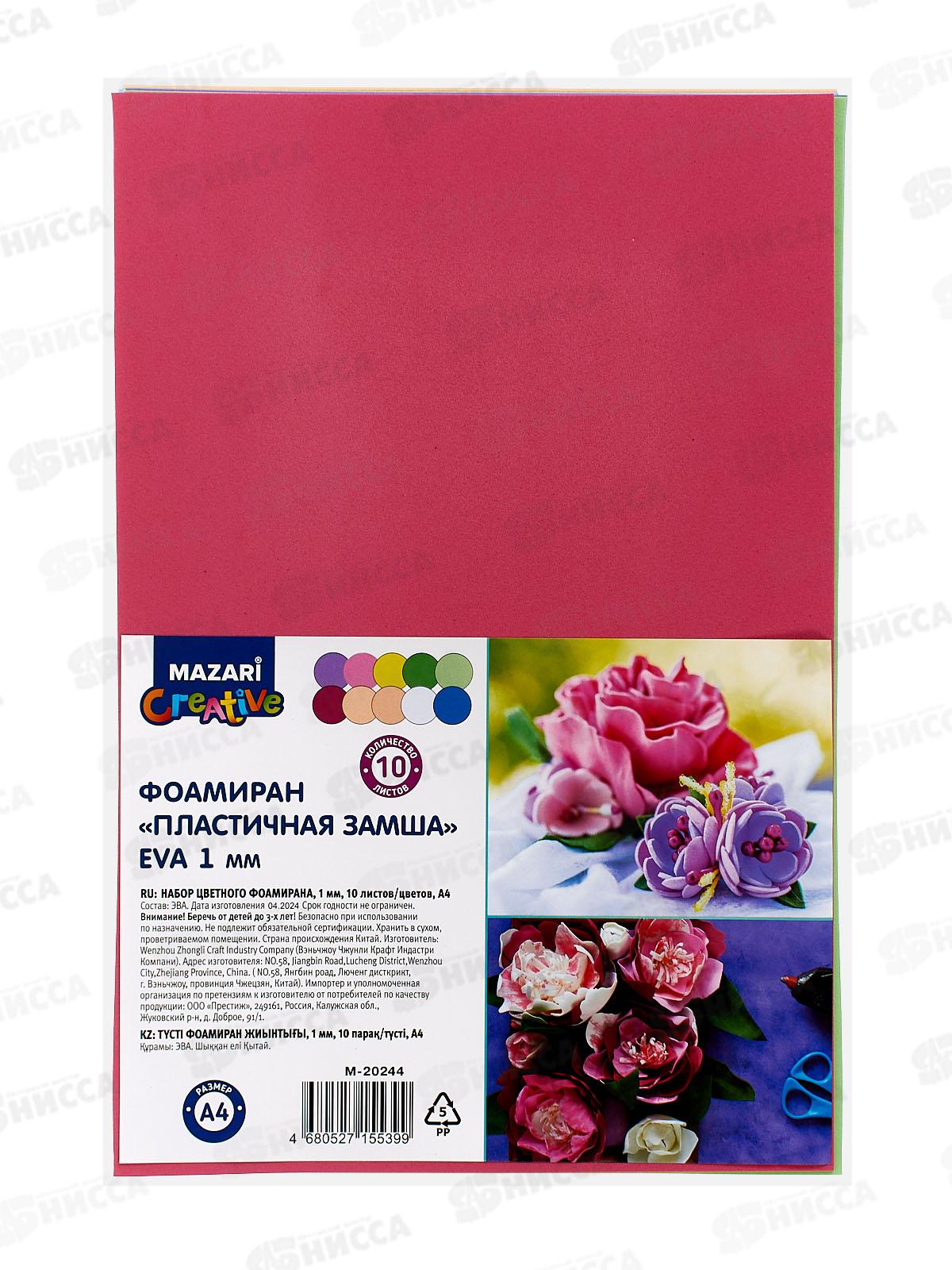 Набор цветного фоамирана 10л 10цв А4 Mazari M-20244