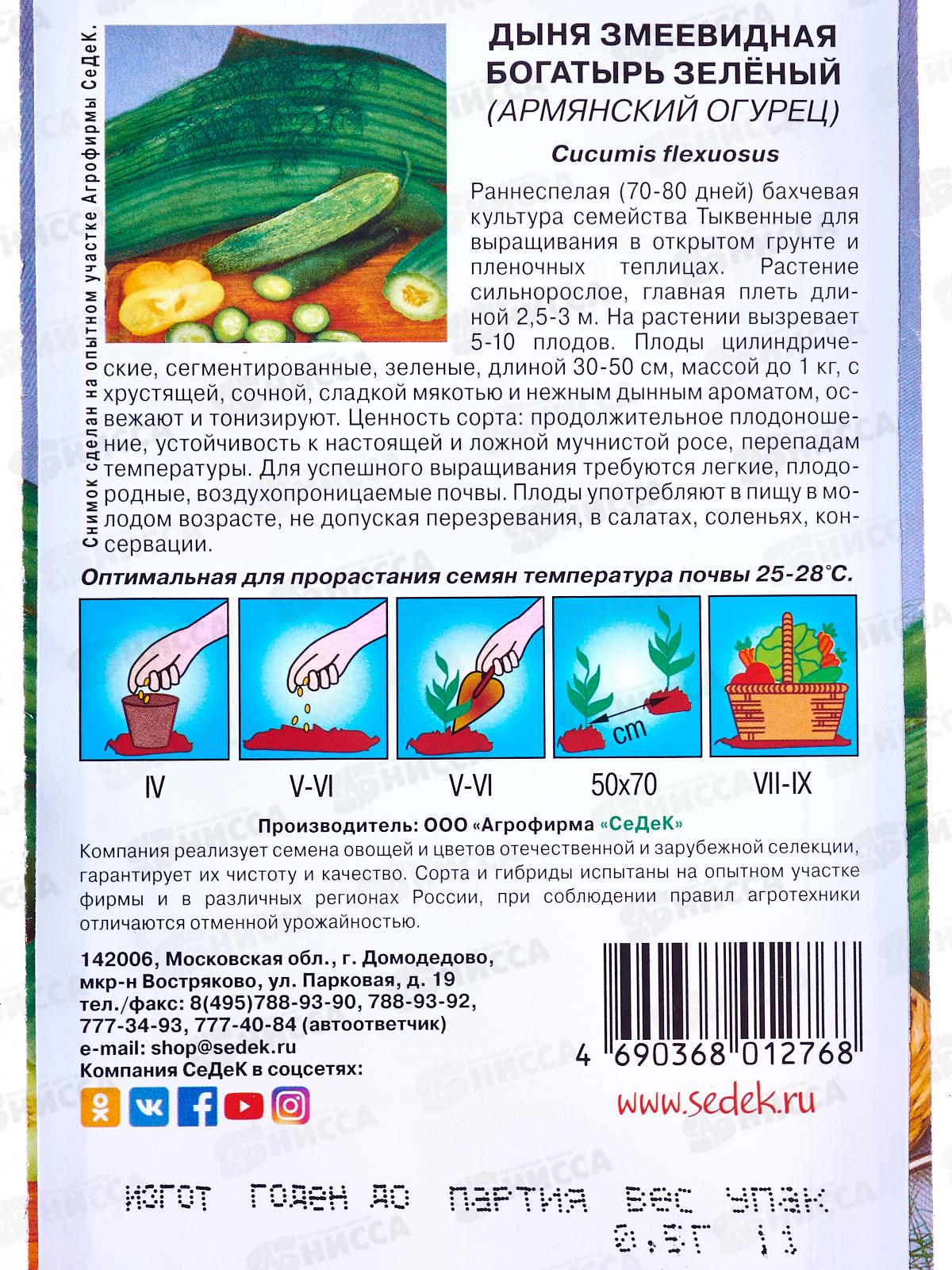 Дыня Змеевидная Богатырь зеленый (Евро, 0,5) СеДек *10