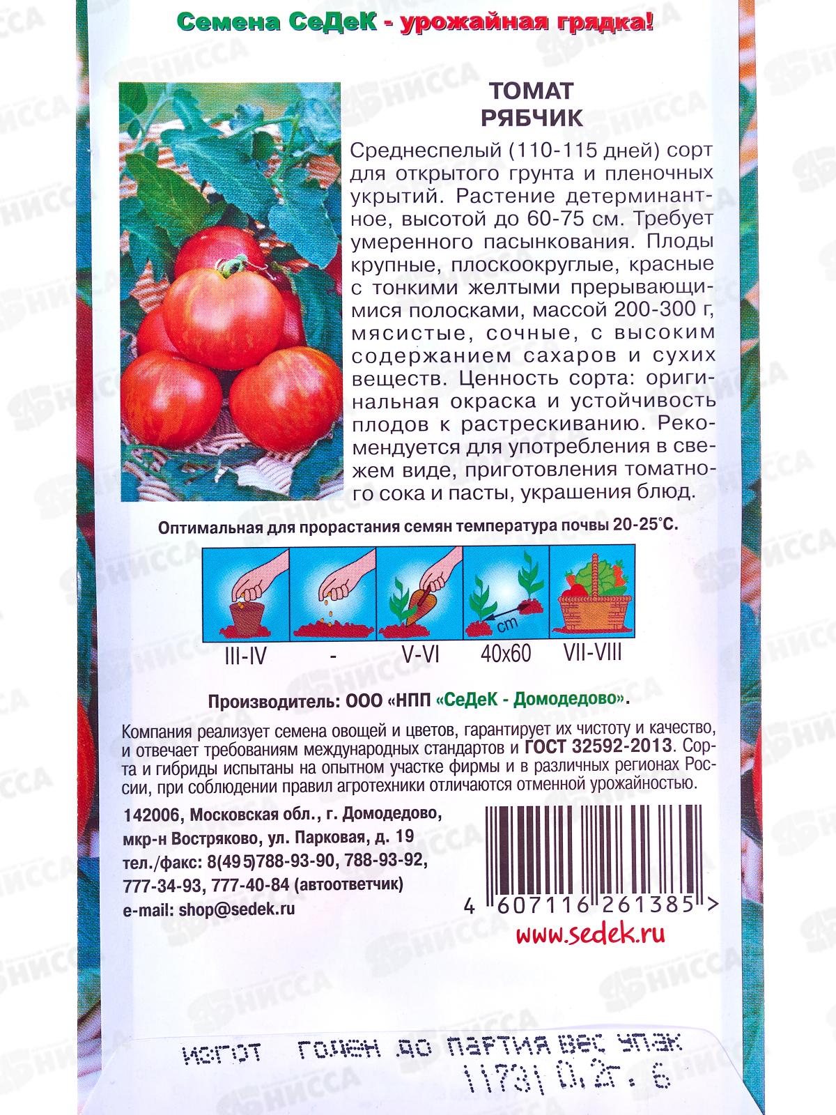 Среднеспелый (110-115 дней) сорт для открытого грунта и пленочных укрытий. Растение детерминантное, высотой до 60-75 см. Требует умеренного пасынкования. Плоды крупные, плоскоокруглые, красные с тонкими желтыми прерывающимися полосками, массой 200-300 г, мясистые, сочные, с высоким содержанием сахаров и сухих веществ. Ценность сорта: оригинальная окраска и устойчивость плодов к растрескиванию. Рекомендуется для употребления в свежем виде, приготовления томатного сока и пасты, украшения блюд.