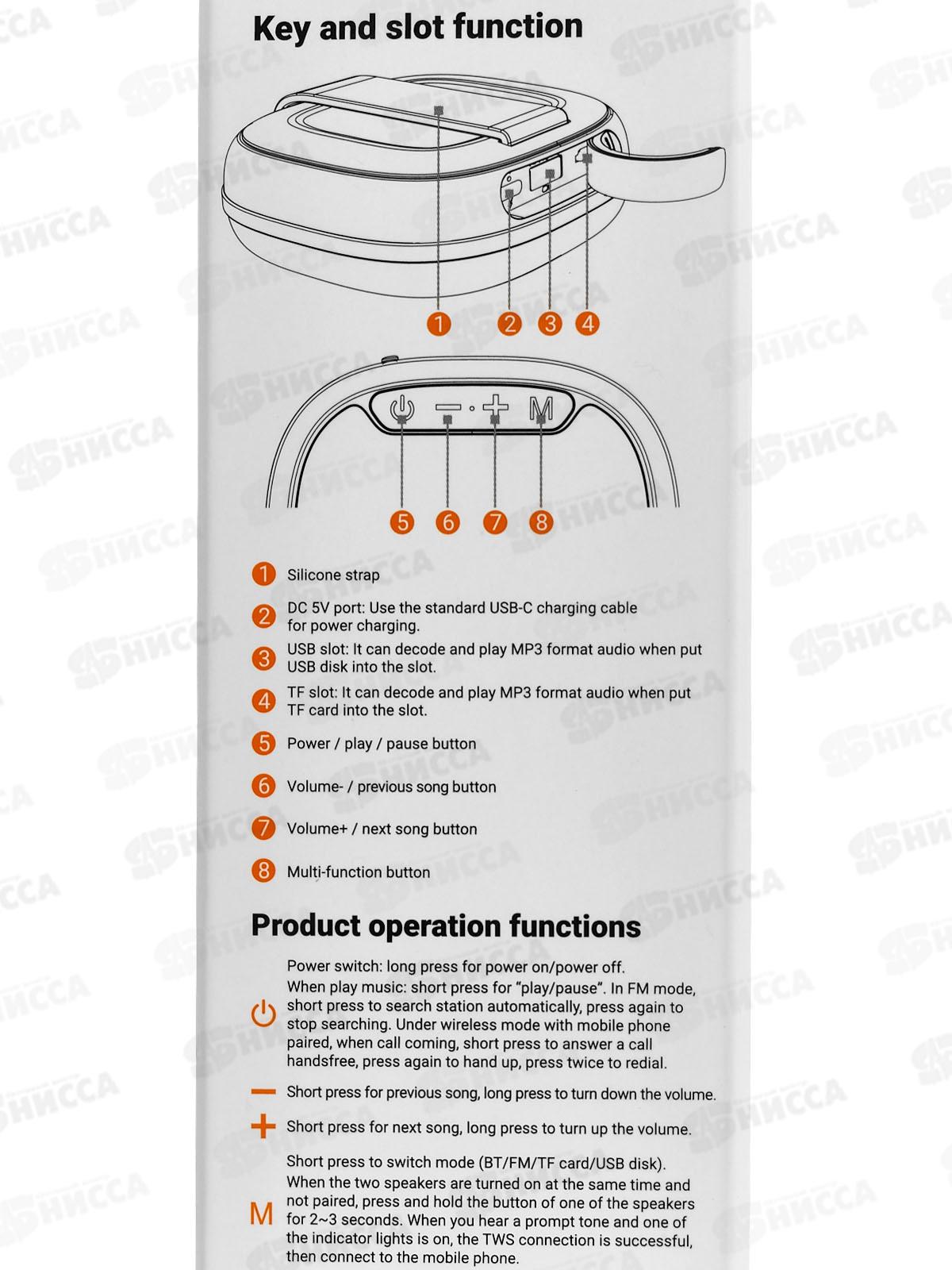 Дополнительные опции: Bluetooth, FM, TF-карта, USB, AUX, TWS