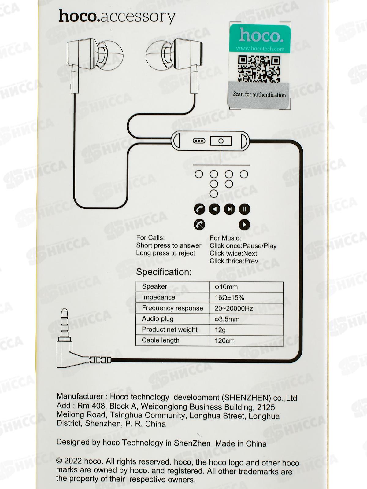Наушники вакуумные AUX разъём с МК 1.2м, Hoco M86 Oceanic army Green