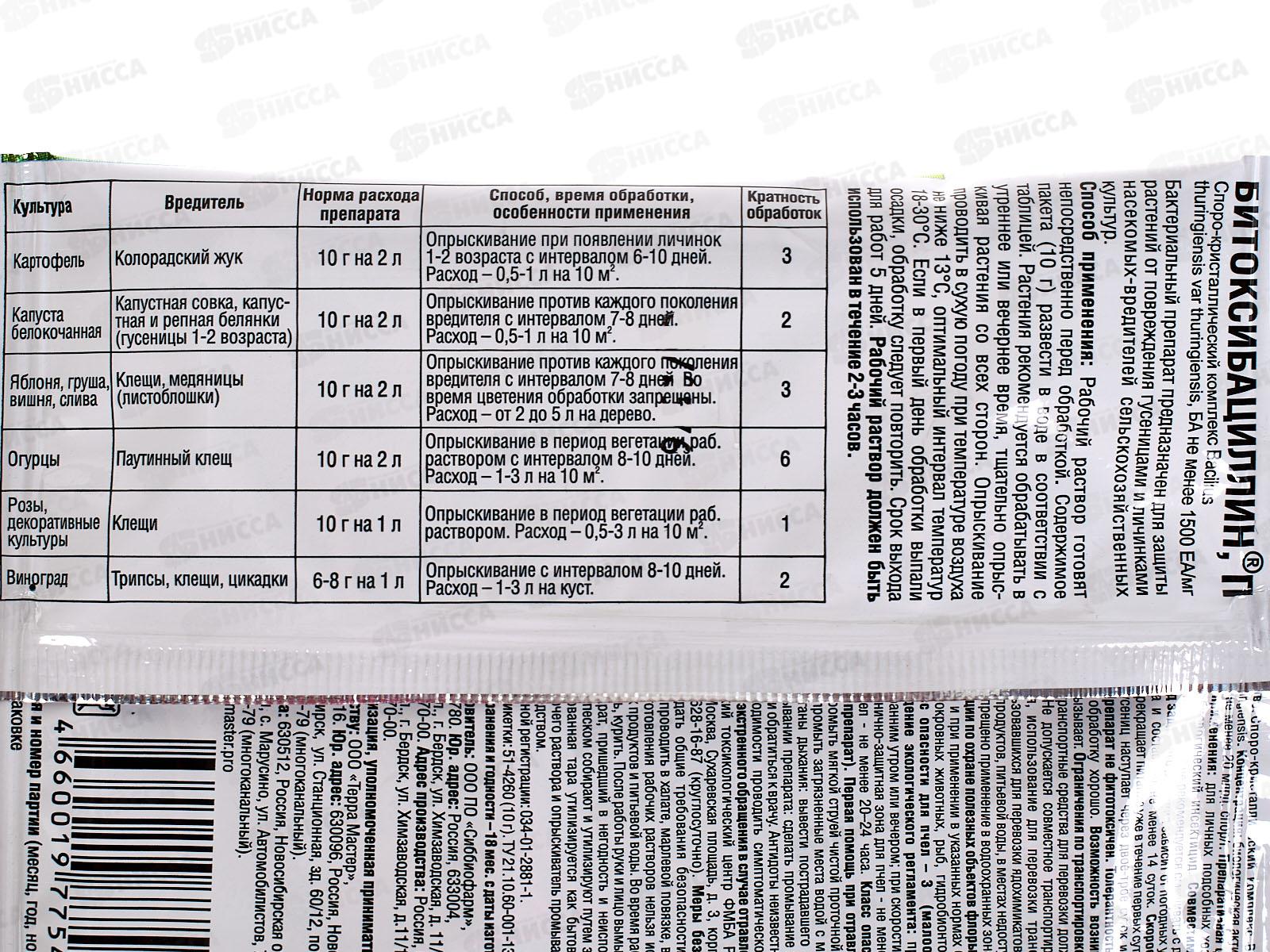 БИО МАСТЕР Битоксибациллин П 10г спектр биоинсектицид от колорадского жука