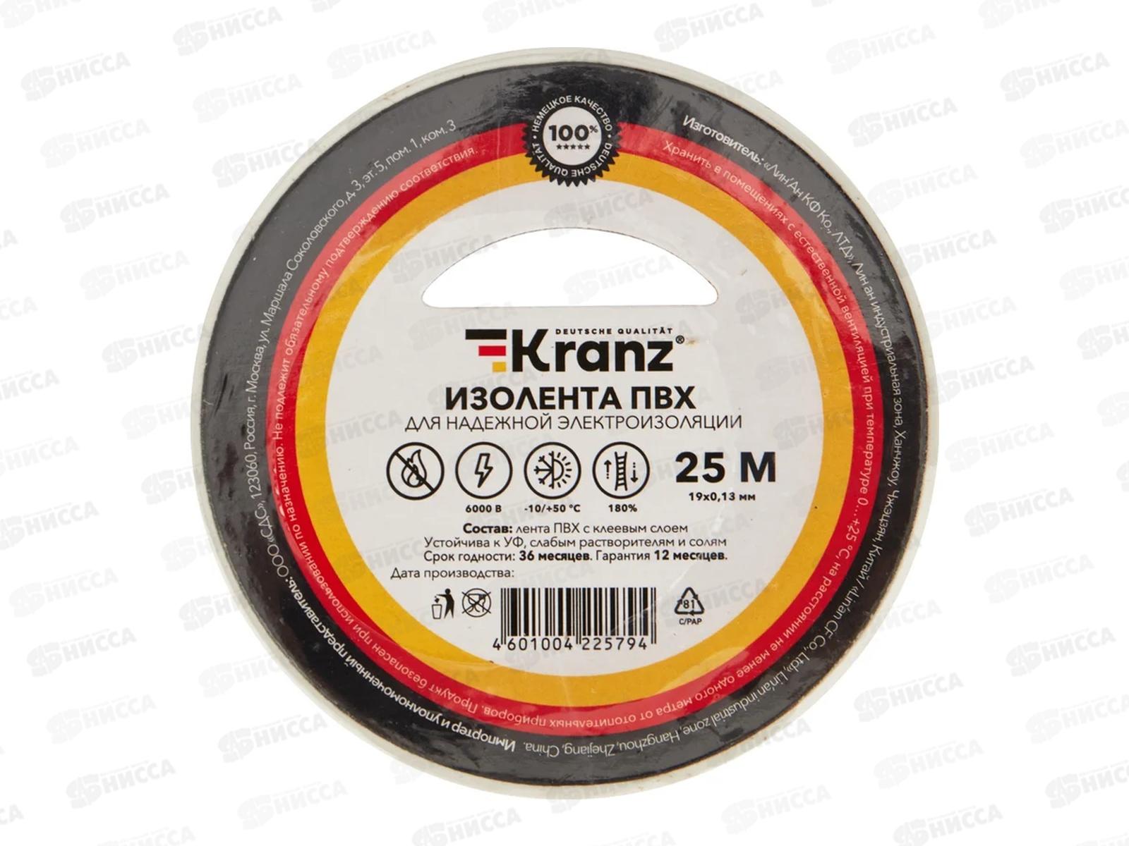 Изолента KRANZ предназначена для электрической изоляции, цветной маркировки, соединения, защиты от внешних факторов и герметизации кабелей, проводов и шнуров. Обеспечивает высокое качество обмотки и защищает места соединения от влаги, пыли, грязи, механических повреждений и перепадов температуры окружающей среды. Выполнена из высококачественной ПВХ-пленки с клеевым слоем.