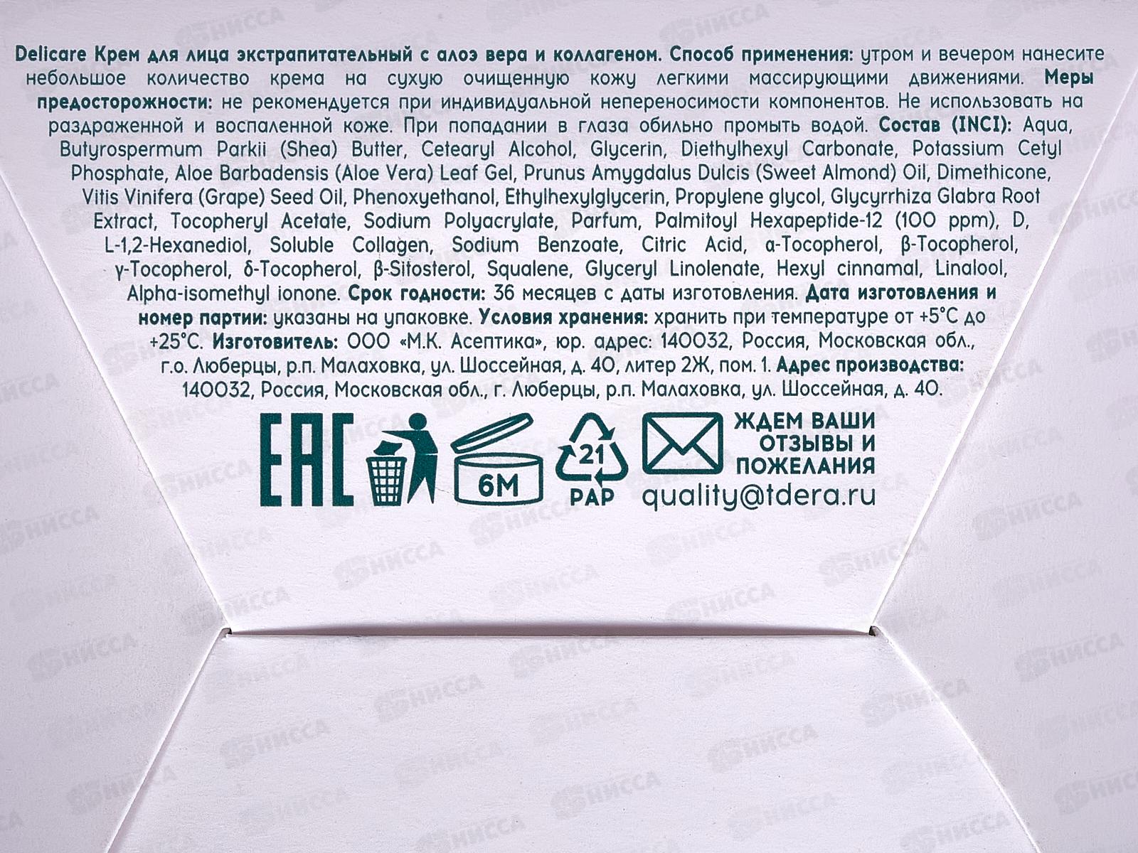 Delicare крем для лица Aloe Экстро питат коктель 50мл