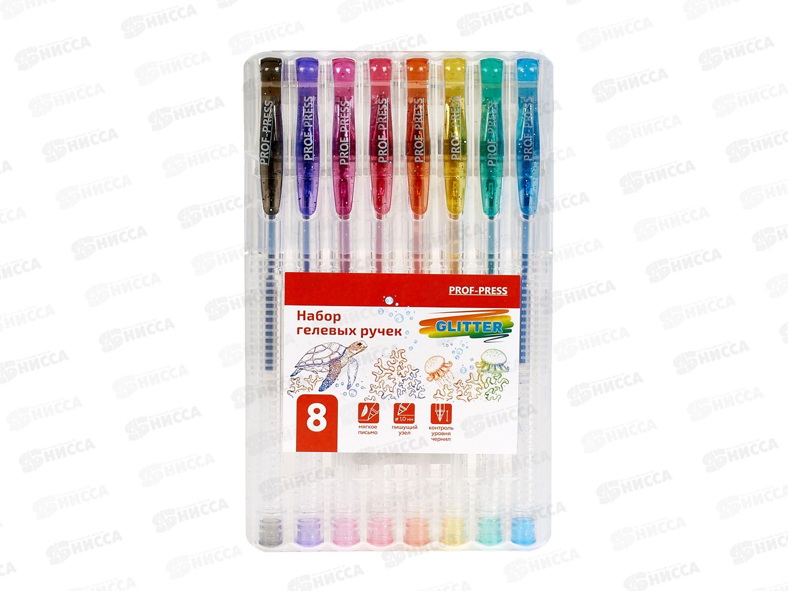 Ручки гелевые ПП 8цв, с блёстками, НР-4739 *12/144