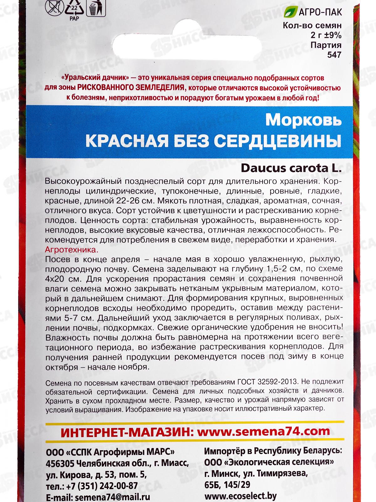 Морковь Красная без сердцевины Евро *10 УрД