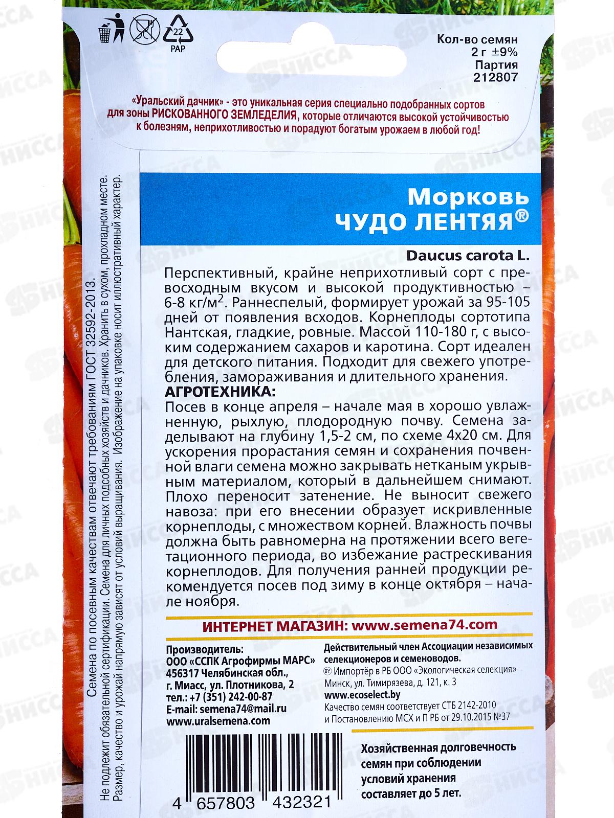 Перспективный, крайне неприхотливый сорт с превосходным вкусом и высокой продуктивностью – 6-8 кг/м2. Раннеспелый, формирует урожай за 95-105 дней от появления всходов. Корнеплоды сортотипа Нантская, гладкие, ровные. Массой 110-180 г, с высоким содержанием сахаров и каротина. Сорт идеален для детского питания. Подходит для свежего употребления, замораживания и длительного хранения. Посев в конце апреля – начале мая в хорошо увлажнённую, рыхлую, плодородную почву. Семена заделывают на глубину 1,5-2 см, по схеме 4 x 20 см. Для ускорения прорастания семян и сохранения почвенной влаги семена можно закрывать нетканым укрывным материалом, который в дальнейшем снимают. Плохо переносит затенение. Не выносит свежего навоза: при его внесении образует искривленные корнеплоды, с множеством корней. Влажность почвы должна быть равномерна на протяжении всего вегетационного периода, во избежание растрескивания корнеплодов. Для получения ранней продукции рекомендуется посев под зиму в конце октября – начале ноября.