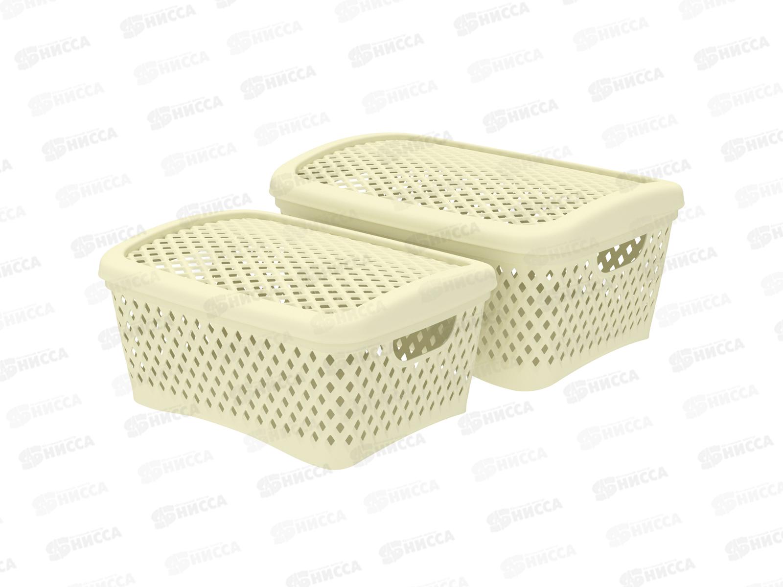 Набор корзинок с крышками "Ромбики" (M+S, 2шт) ваниль, АП 416