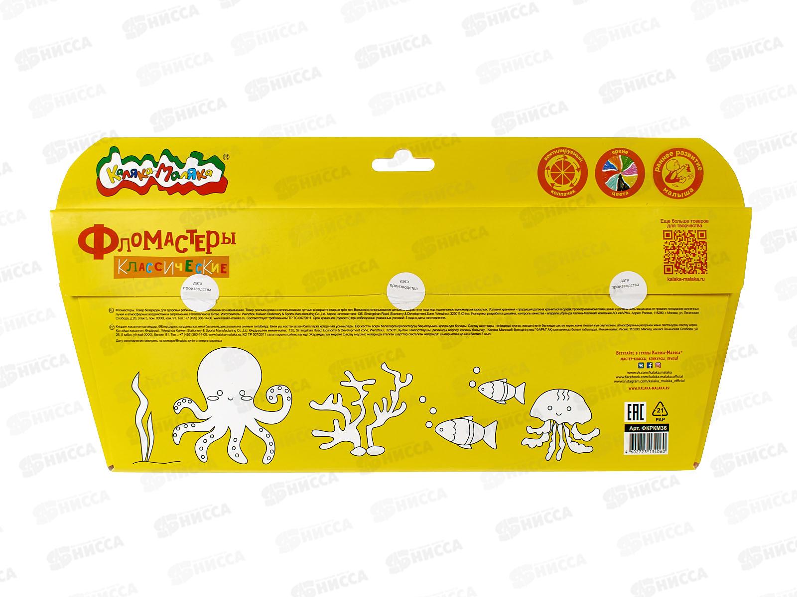 Фломастеры 36цв. Каляка-Маляка, смыв, к/уп., ФКРКМ36 *12/48