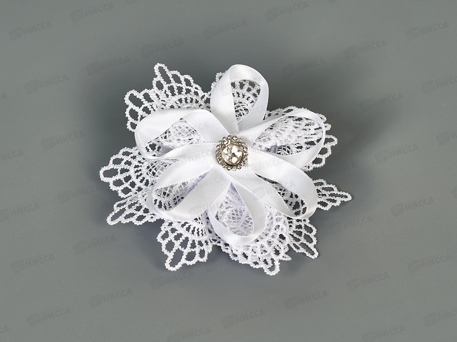 Бант гипюр, шелк круглый стразы камень 9см №9316
