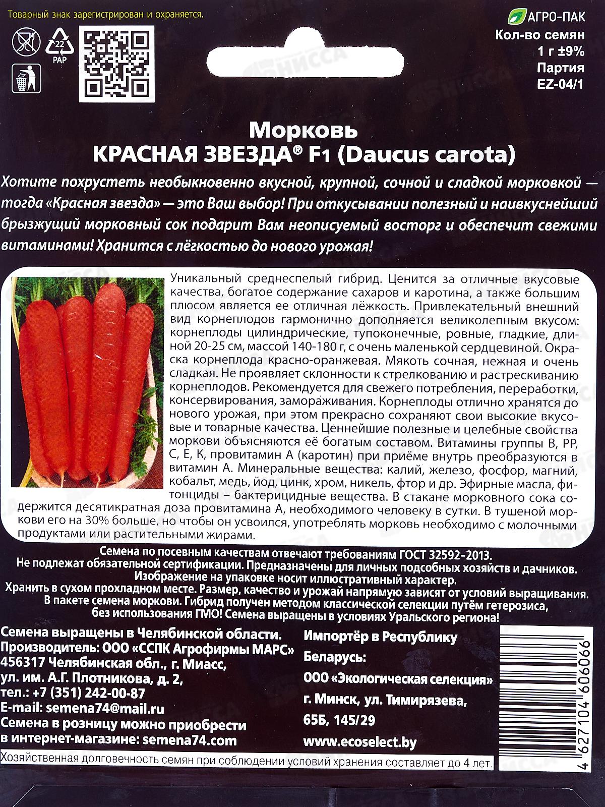 Морковь Красная Звезда F1 Евро *10 УрД!!!