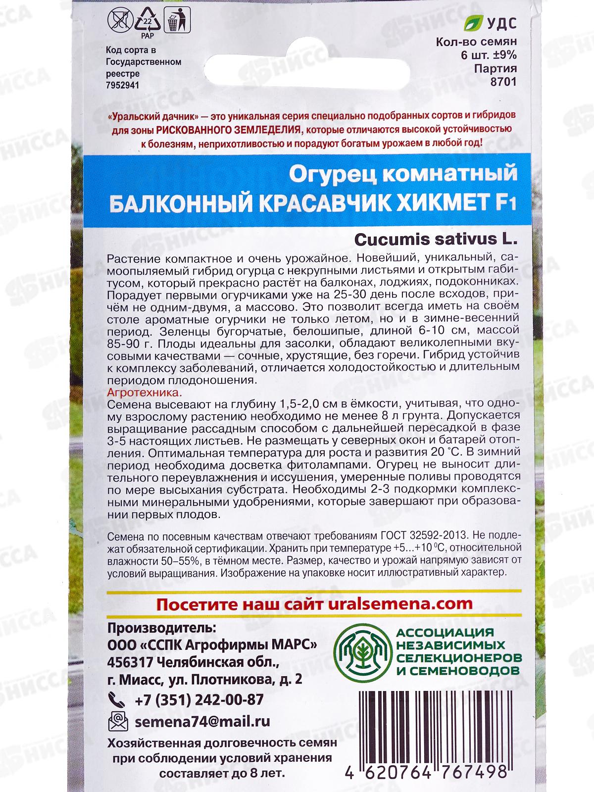 Огурец Балконный Красавчик Хикмет F1 Евро *10 УрД!!!