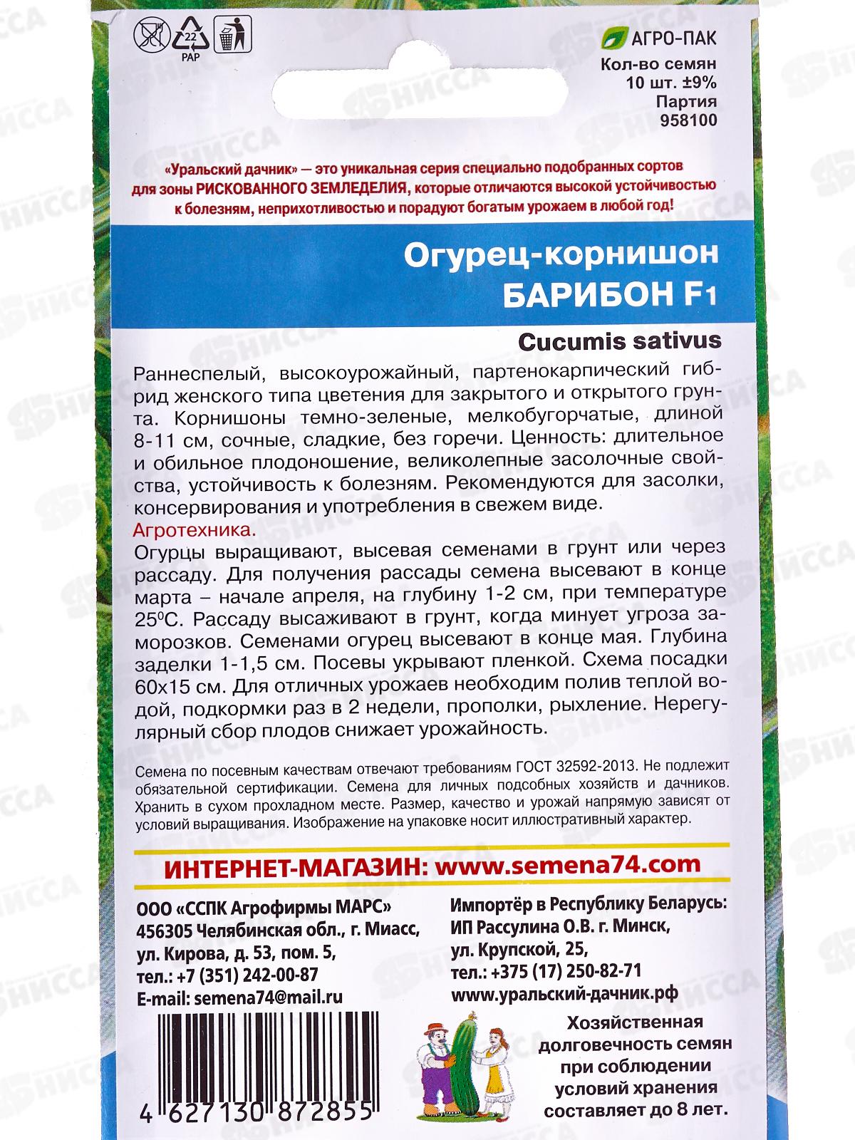 Огурец Барибон F1 корнишон Евро *10 УрД!!!