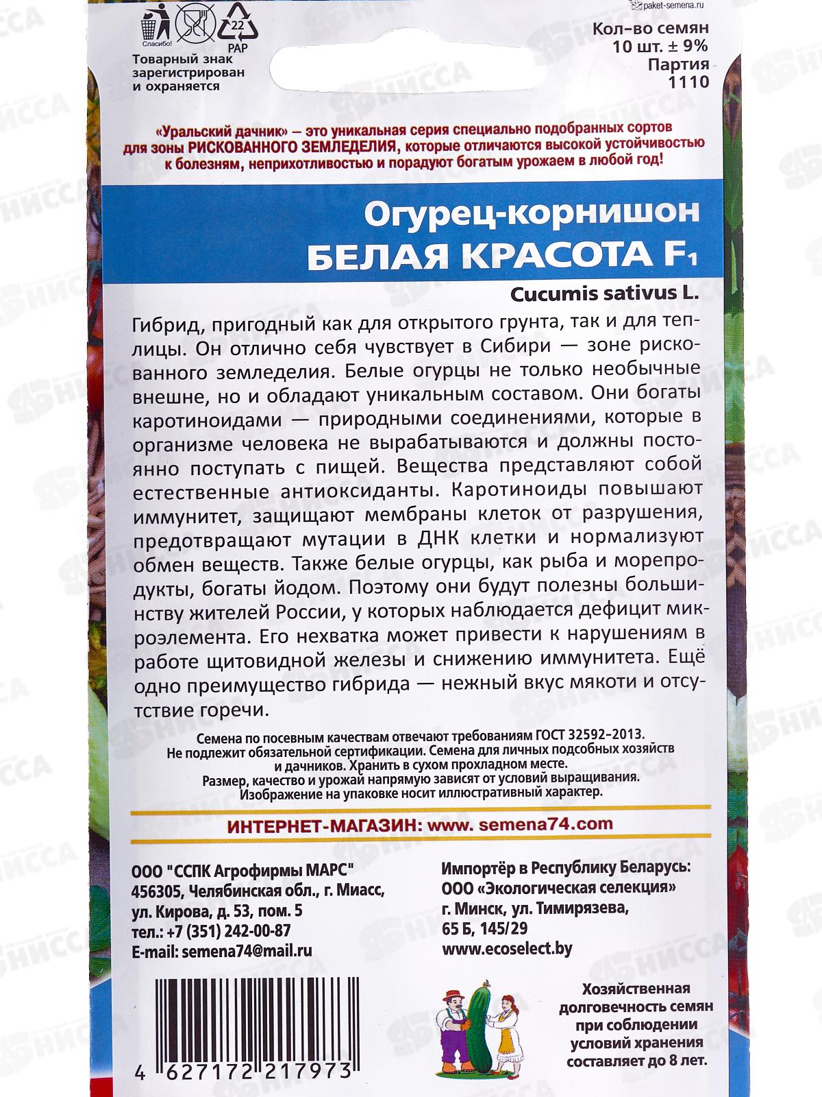 Огурец Белая красота F1 корнишон Евро *10 УрД!!!