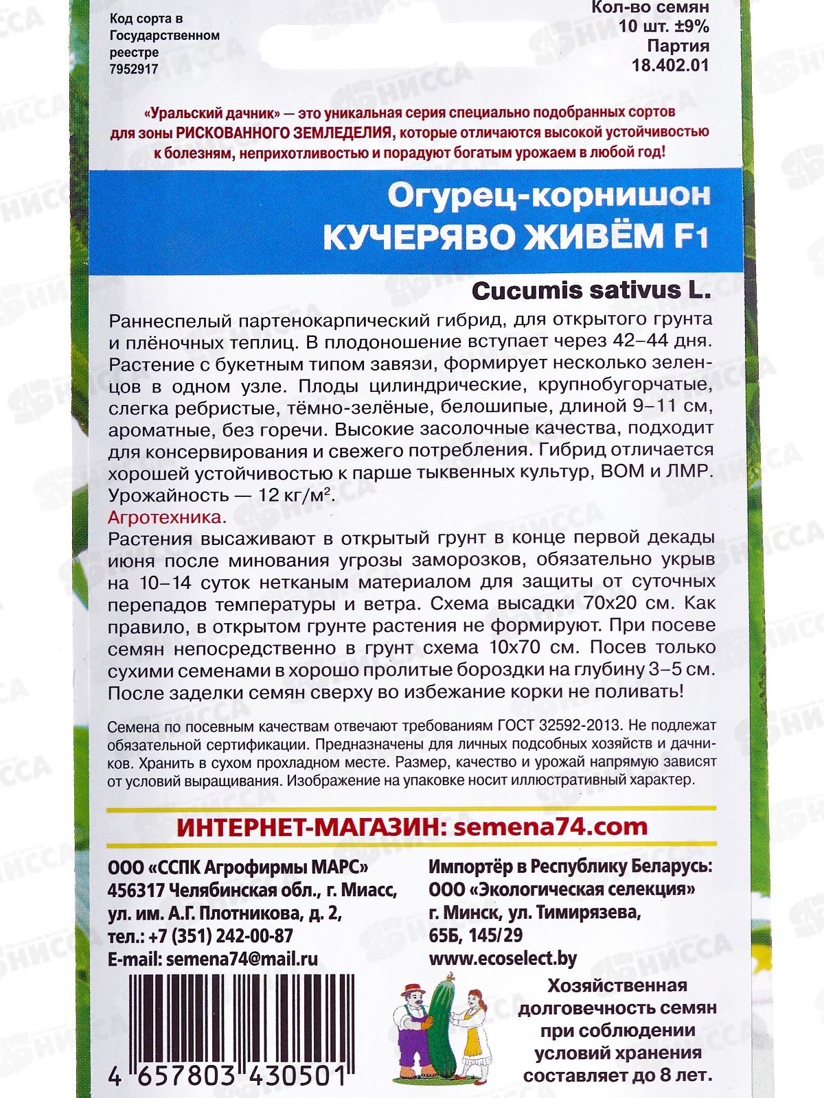Огурец Кучеряво живем F1 корнишон Евро *10 УрД