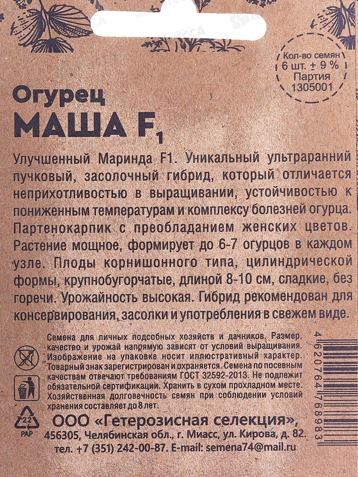Раннеспелый, высококурожайный, партенокарпический гибрид с ограниченной побегообразовательной способностью, что значительно облегчает формирование растений. От всходов до плодоношенения 40-45 дней. Рекомендуется для выращивания в открытом грунте и под плёночными укрытиями. Обладает повышенной устойчивостью к комплексу заболеваний. Плоды цилиндрической формы, крупнобугорчатые, тёмно-зелёные, без горечи. Длина зеленца 8-10 см. Отличные вкусовые качества как в свежем, так и в консервированом виде. Высокая урожайность (13-14 кг/м2) и товарность, выравненность плодов, позволяет с успехом использовать их для личного потребления и на продажу. Посев на рассаду в начале мая, высадка 20-дневной рассады в грунт в конце мая - начале июня в фазе трех-четырех настоящих листьев. Посев в открытый грунт в конце мая, в бороздки на глубину 1,5-2 см. Шаг между бороздками 50 см, после прореживания на погонном метре оставляют 3-4 растения. Огурцы требуют высокоплодородных, нейтральных, дренированных, хорошо заправленных органикой почв.