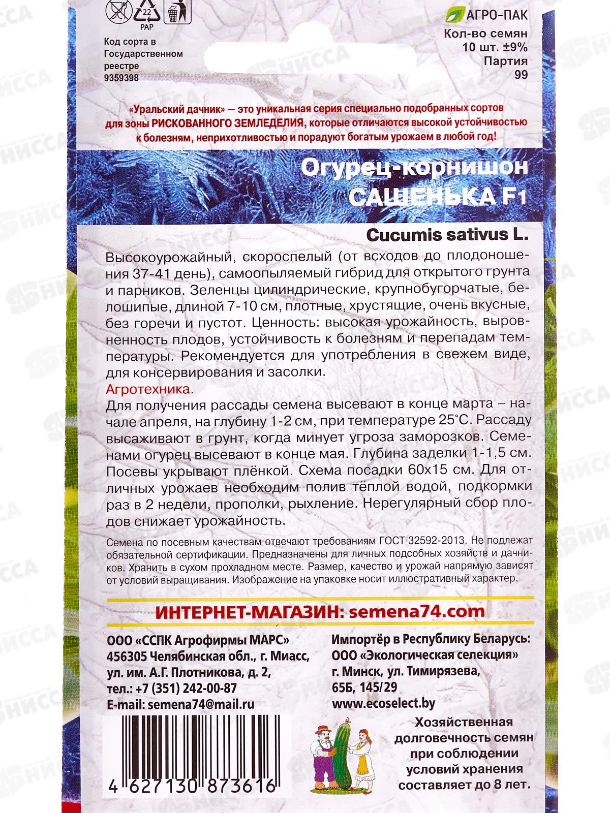 Огурец Сашенька F1 корнишон Евро *10 УрД!!!