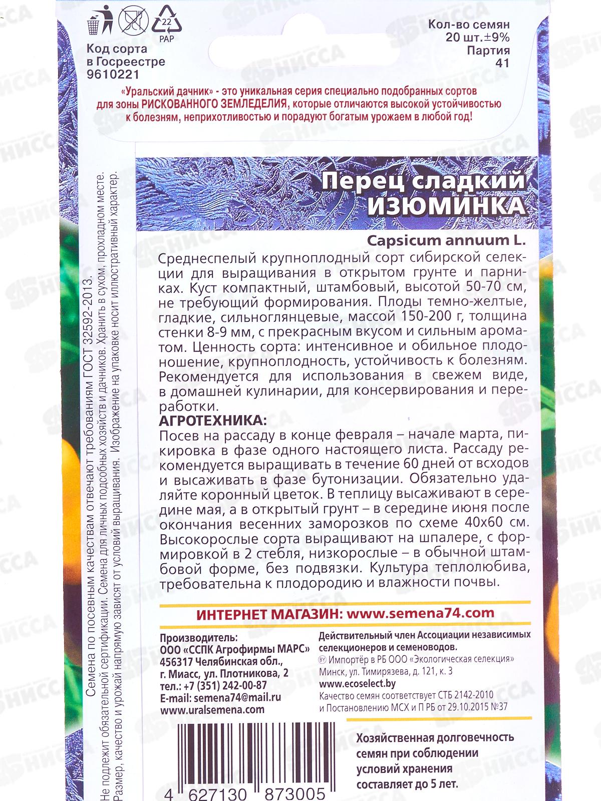 Среднеспелый крупноплодный сорт сибирской селекции для выращивания в открытом грунте и парниках. Куст компактный, штамбовый, высотой 50-70 см, не требующий формирования. Плоды тёмно-жёлтые, гладкие, сильноглянцевые, массой 150-200 г, толщина стенки 8-9 мм, с прекрасным вкусом и сильным ароматом. Ценность сорта: интенсивное и обильное плодоношение, крупноплодность, устойчивость к болезням. Рекомендуется для использования в свежем виде, в домашней кулинарии, для консервирования и переработки. Посев на рассаду в конце февраля-начале марта, пикировка в фазе одного настоящего листа. Рассаду рекомендуется высаживать в фазе бутонизации. В теплицу высаживают в середине мая, а в открытый грунт – в середине июня, после окончания весенних заморозков, по схеме 40 х 60 см. Высокорослые сорта выращивают на шпалере, с формировкой в 2 стебля, низкорослые – в обычной штамбовой форме, без подвязки. Культура теплолюбива, требовательна к плодородию и влажности почвы.
