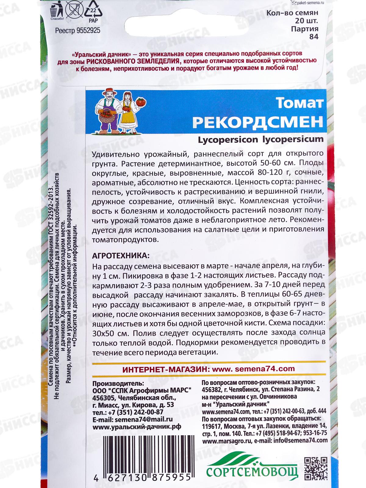 Удивительно урожайный, раннеспелый сорт для сткрытого грунта. Растение детерминантное, высотой 50-60 см. Плоды округлые, красные, выровненные, массой 80-120 г, сочные, ароматные, абсолютно не трескаются. Ценность сорта: раннейпелость, устойчивость к растрескиванию и вершинной гнили, дружное созревание, отличный вкус. Комплексная устойчивость к болезням и холодостойкость растений позволят получить урожай томатов даже в неблагоприятное лето. Рекомендуется для использования на салатные цели и приготовления томатопродуктов. На рассаду семена высевают в марте - начале апреля, на глубину 1 см. Пикировка в фазе 1-2 настоящих листьев. Рассаду подкармливают 2-3 раза полным удобрением. За 7-10 дней перед высадкой рассаду начинают закалять. В теплицы 60-65 дневную рассаду высаживают в апреле-мае, в открытый грунт- в июне, после окончания весенних заморозков, в фазе 6-7 насто- ящих листьев и хотя бы одной цветочной кисти. Схема посадки: 30х50 см. Полив следует осуществлять после захода солнца только теплой водой. Подкормки рекомендуется проводить в течение всего периода вегетации.
