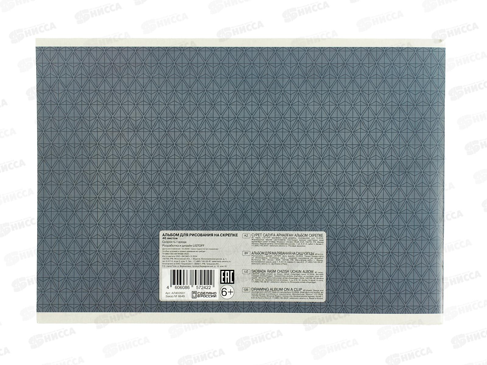 Альбом д/рис.40л ЭКСМ Скорость города. мел.картон, скрепка АЛ402601