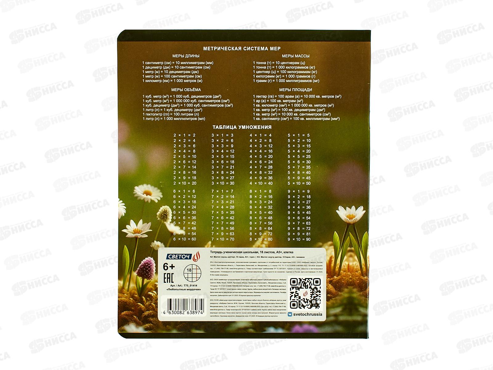 Тетрадь 18л клетка SVETOCH Любопытные мордочки, Т75, 01414 *20/80