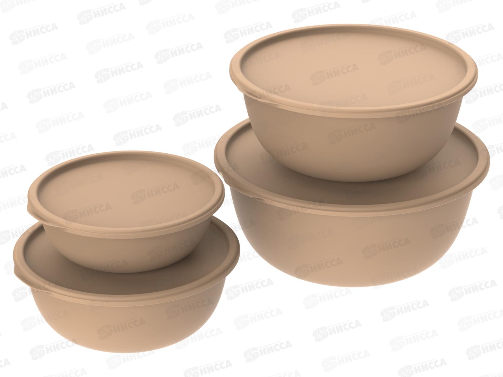 Набор мисок с крышками "Шарм" №4 (4шт, какао) АП 621 (1,3л, 2,3л, 3,7л, 5,6л)
