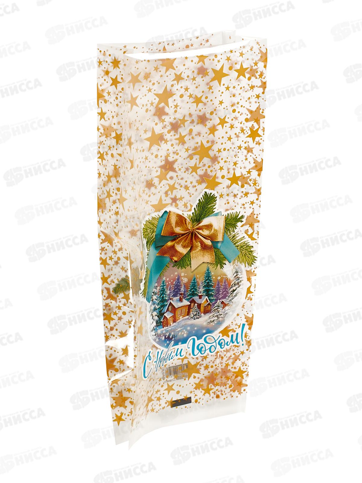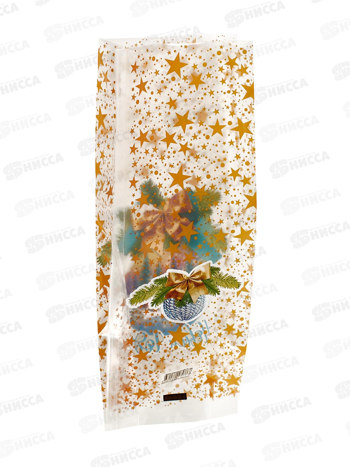 Пакет подарочный (16+2*4)*42/60 мкм Золотой бант прозрач. *50/500