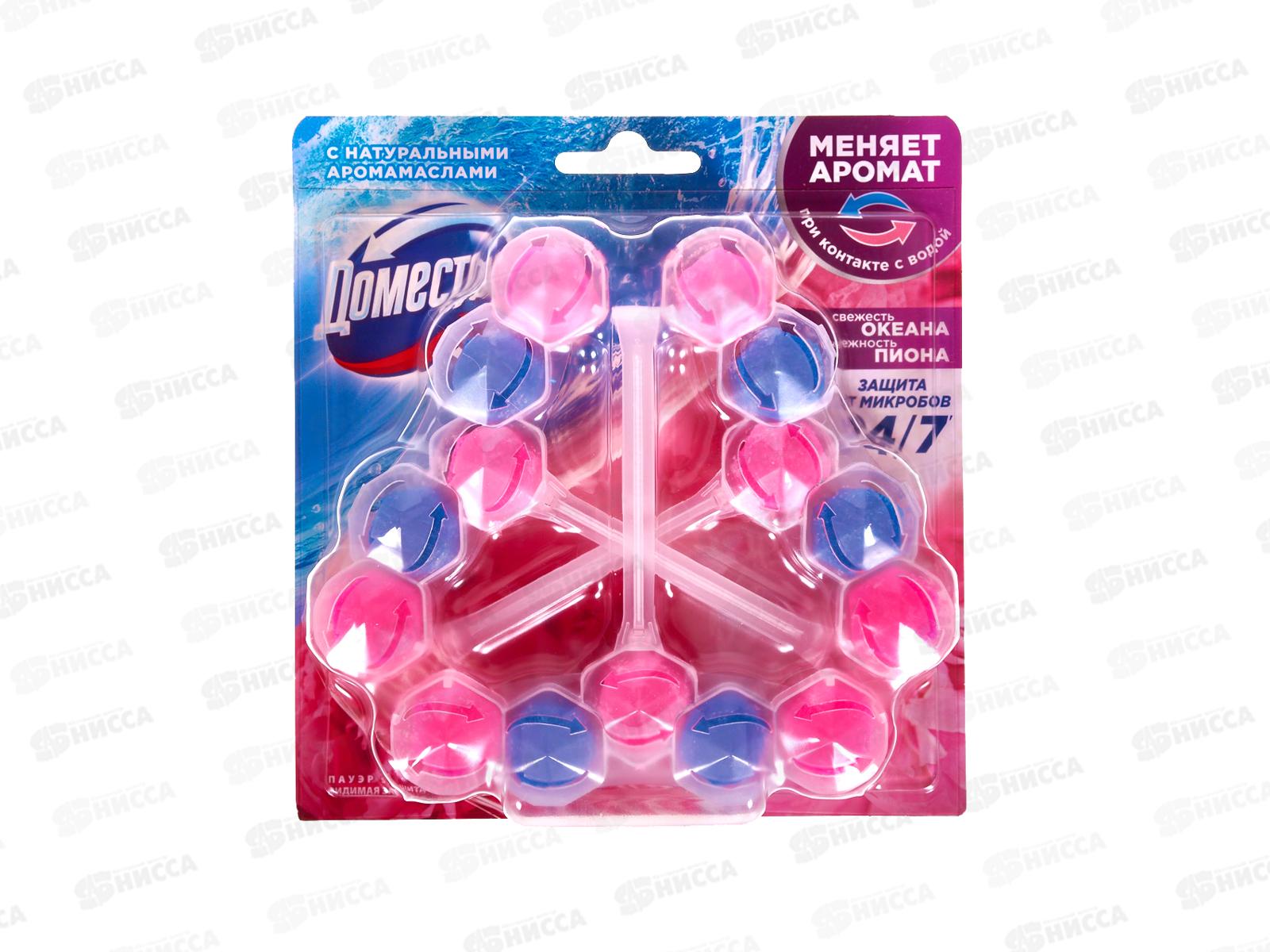 ДОМЕСТОС блок для унитаза Power 5 3*50г Свеж Океана и неж пиона *1/10
