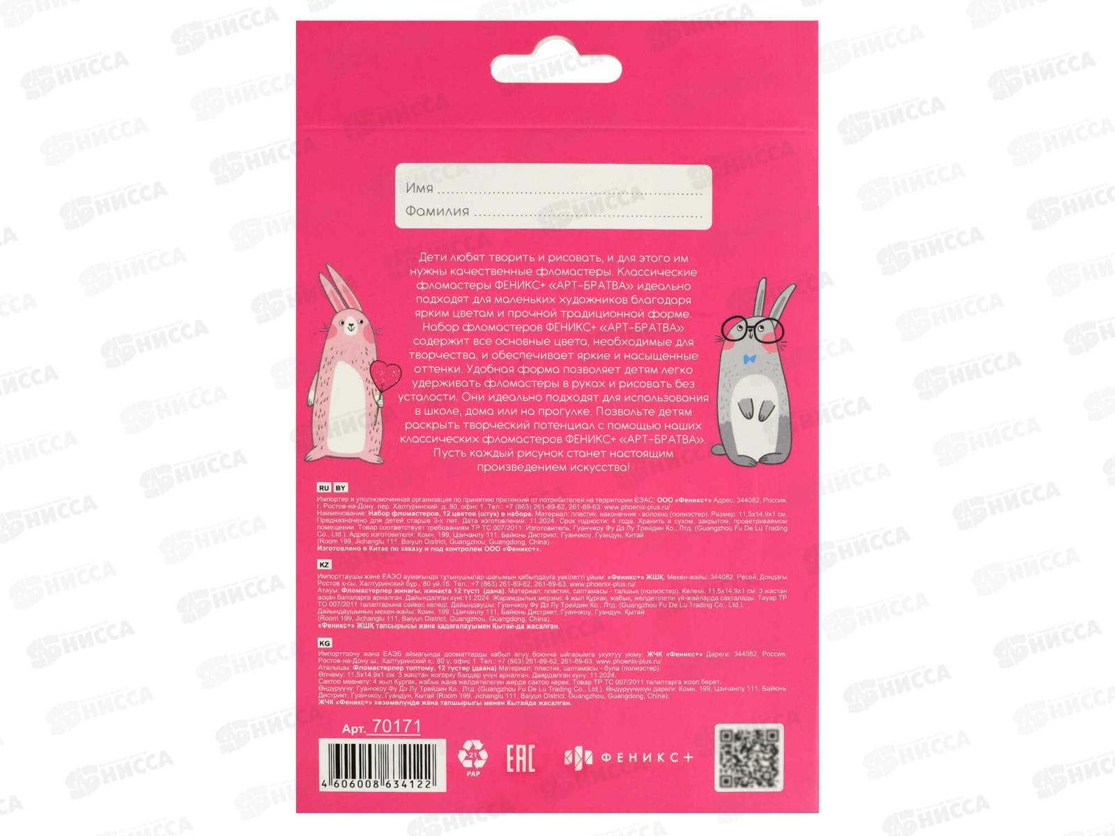 Фломастеры 12цв ФЕН смыв.вент.колп. 70171 *12