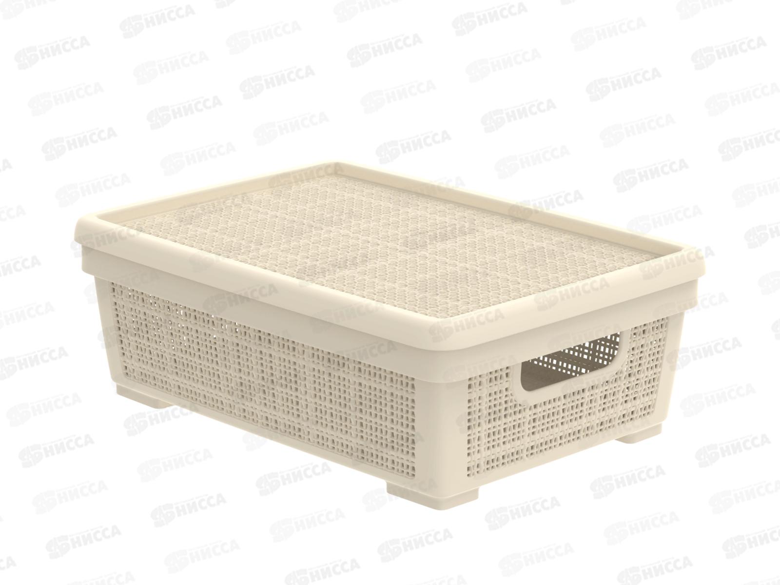 Корзина плетёная с крышкой "Лён" 11л, слоновая кость, АП 451 (400х284х137мм)