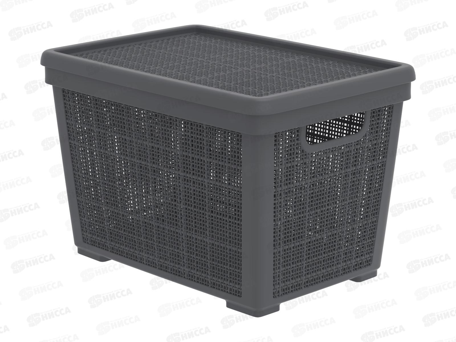 Корзина плетёная с крышкой "Лён" 22л, графит, АП 479 (400х284х264мм)