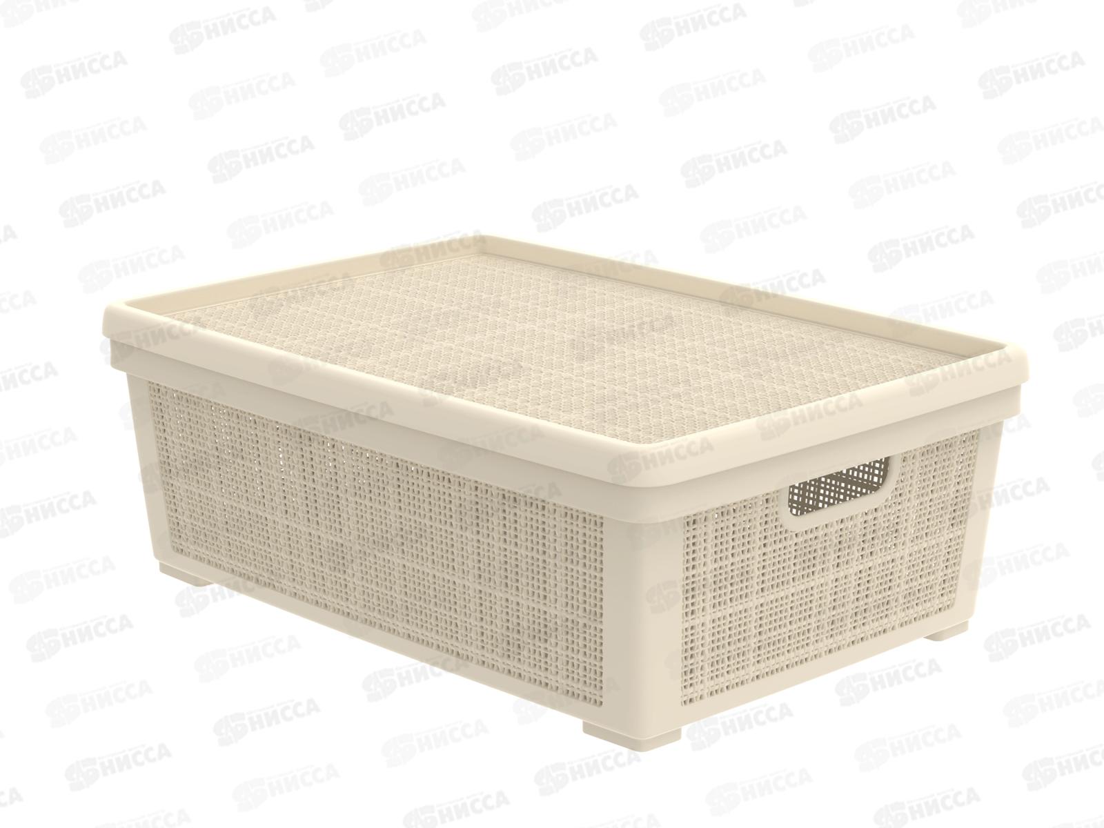 Корзина плетёная с крышкой "Лён" 35л, слоновая кость, АП 453 (568х400х203мм)