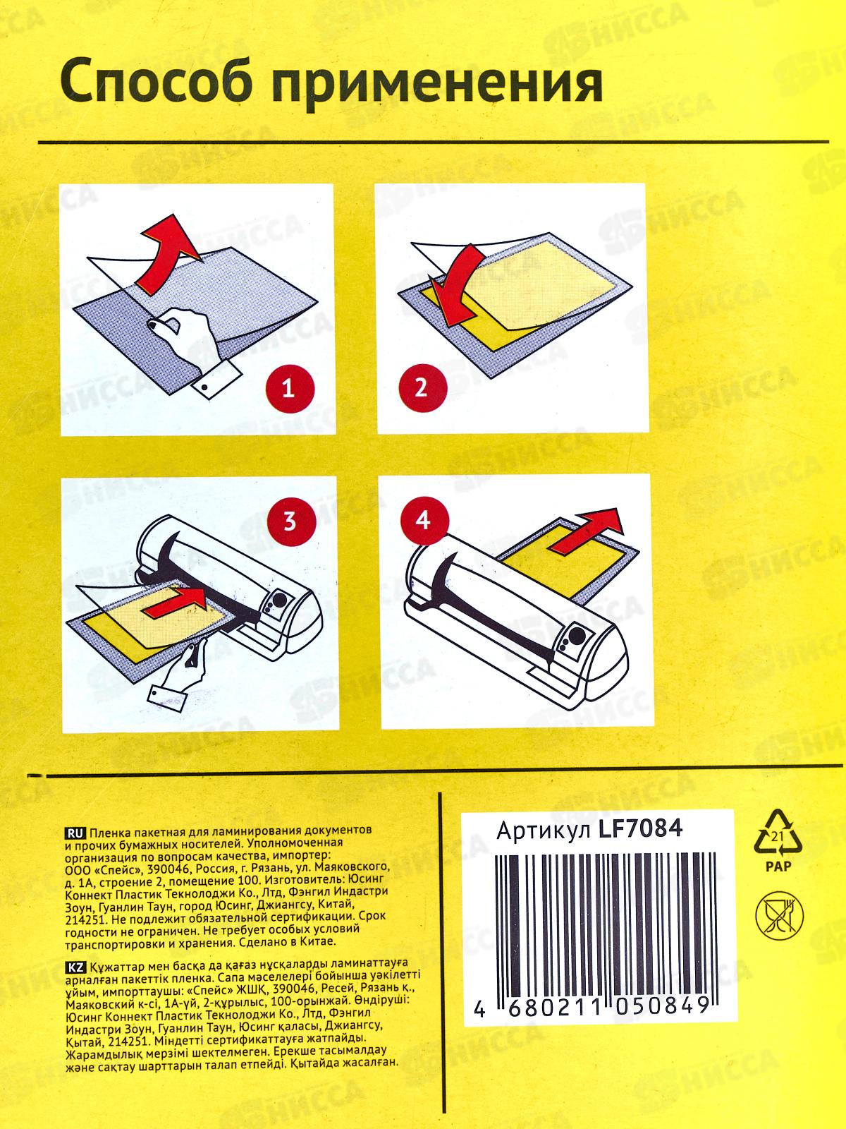 Пленка д/лам. OfficeSpace А5 125мкм, 100шт глянцевая *20