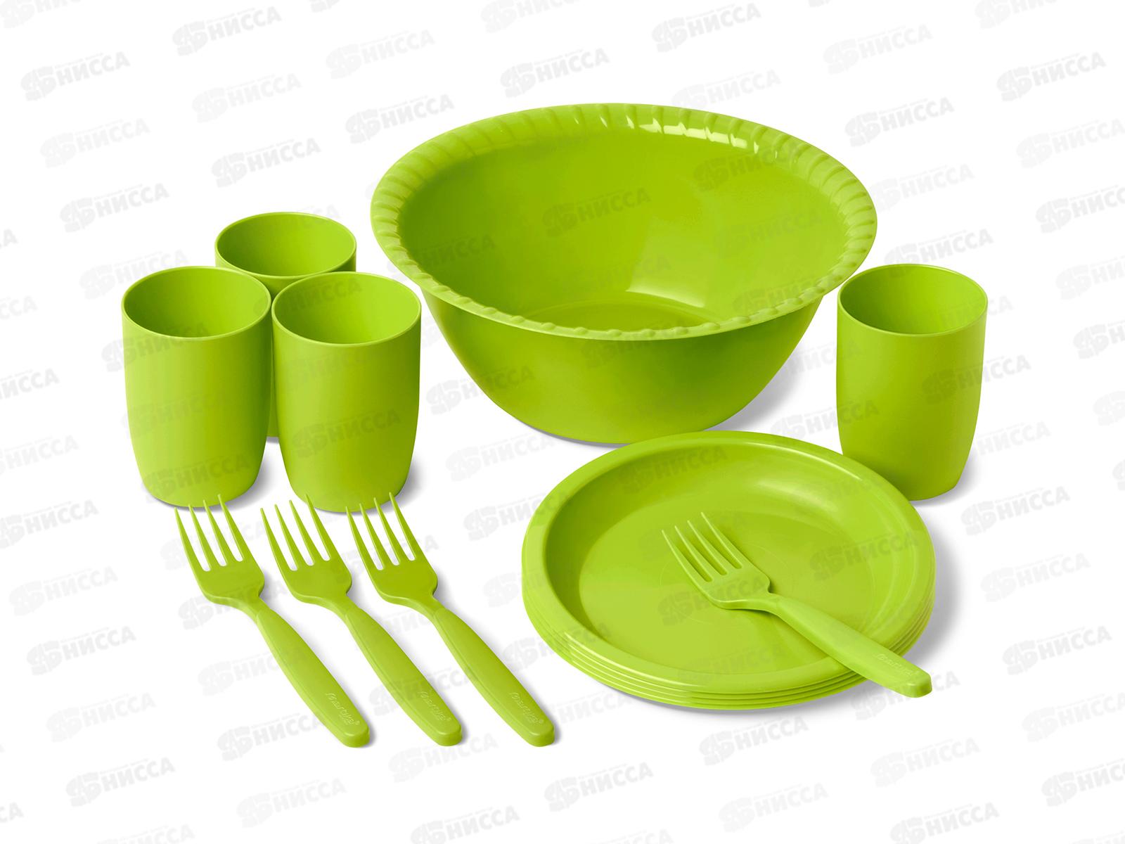 Набор посуды для пикника «Витто» на 4 персоны, состоит из 13 предметов: миска-салатница 2,5л (1шт), тарелки для вторых блюд (4шт), вилки (4шт), стаканы для холодных напитков (4 шт). Посуда выполнена из качественного пищевого пластика и разрешена для контакта с пищевыми продуктами.