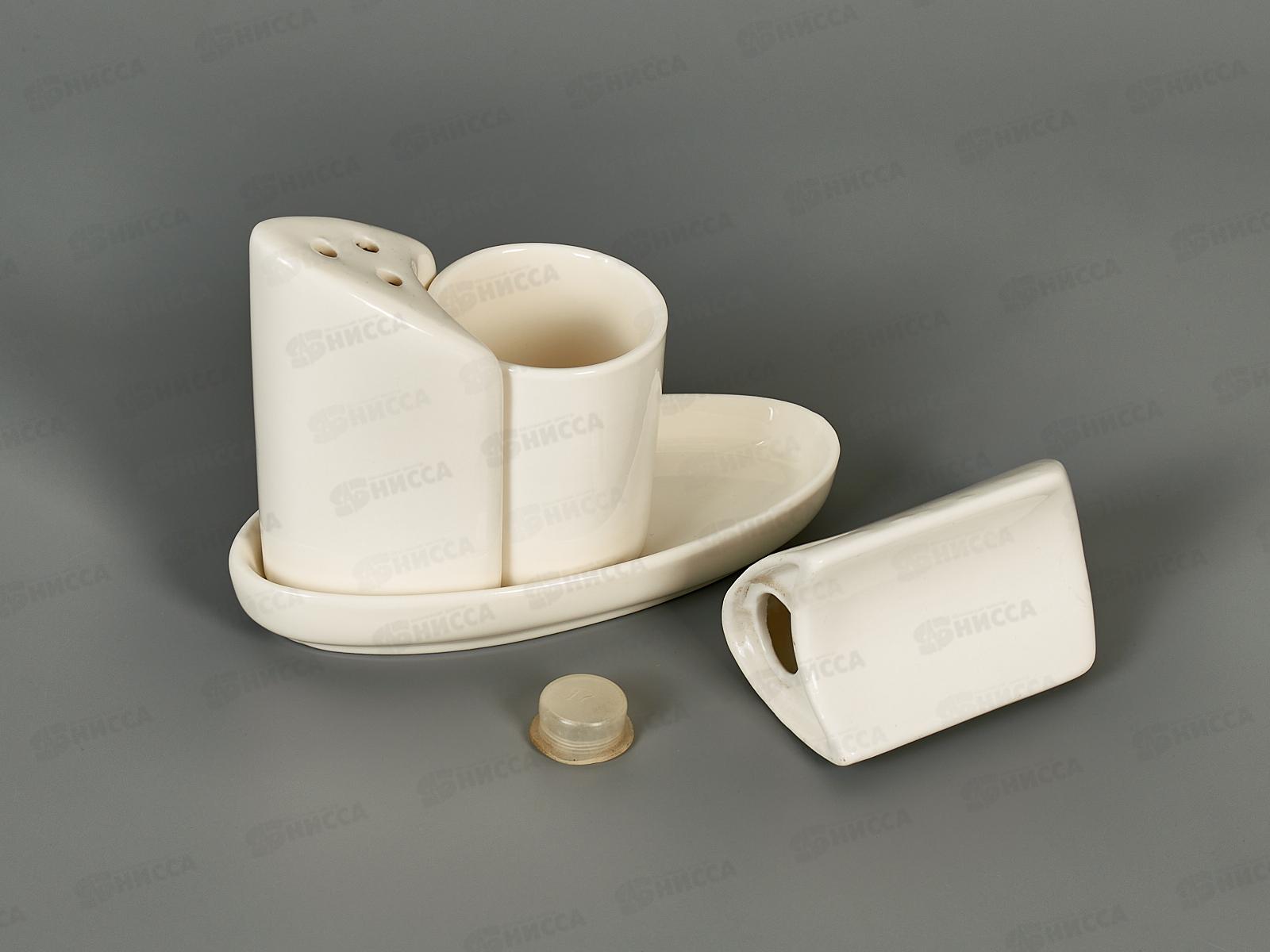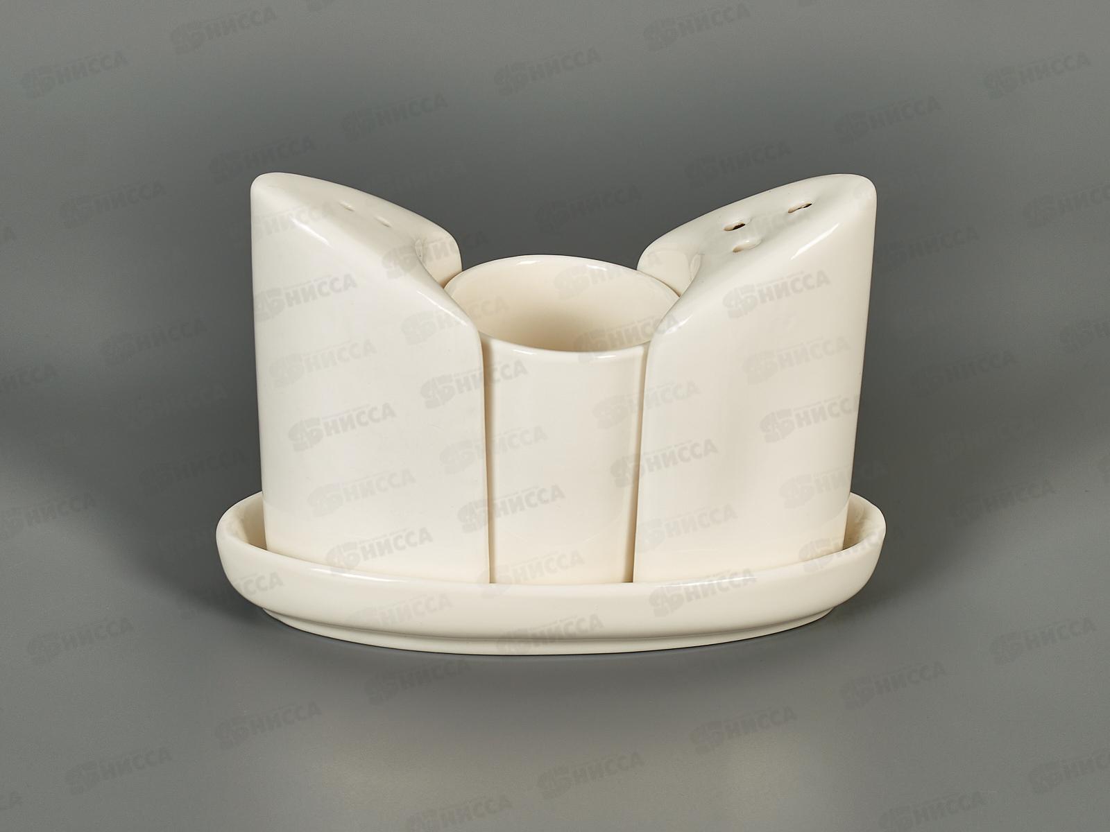 Лаконичный комплект состоит из солонки, перечницы и емкости для зубочисток, размещенных на компактной подставке. Стильный дизайн позволит набору функционально украсить любое застолье.