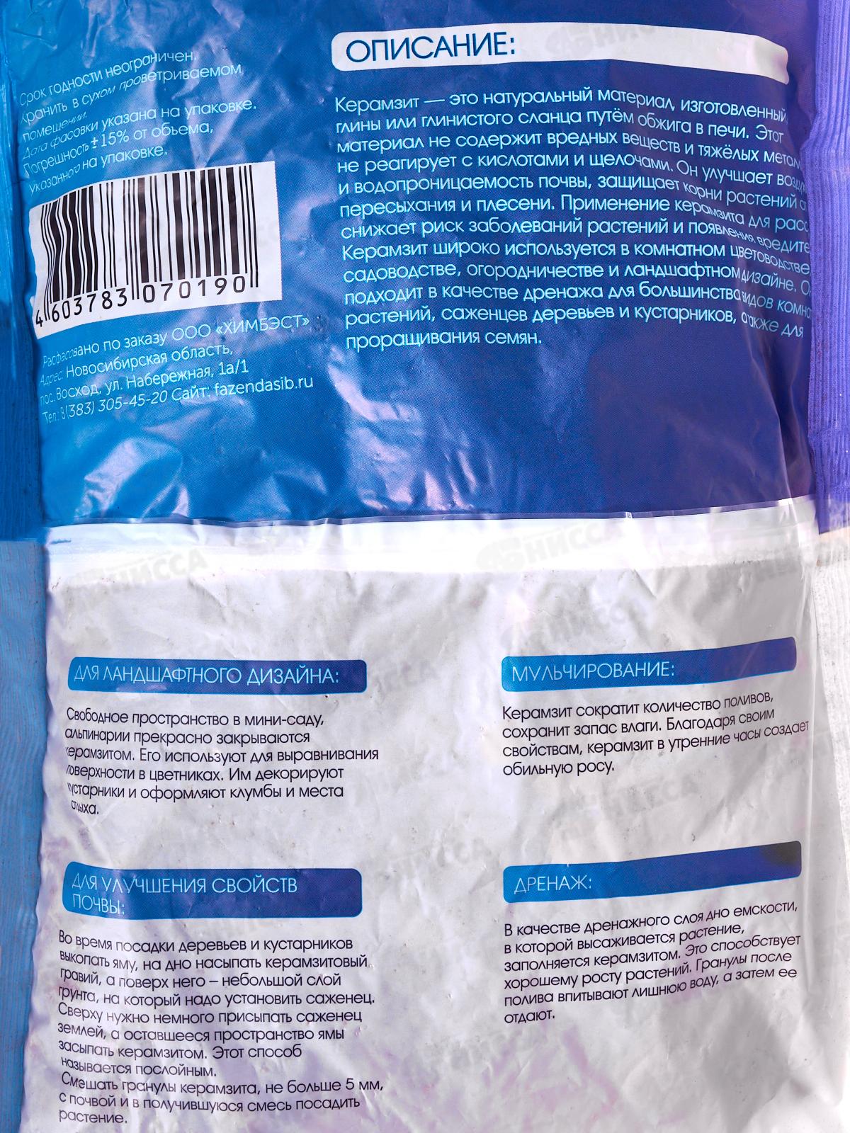 Дренаж (керамзит) средний 2л (Фазенда Сибири) *20