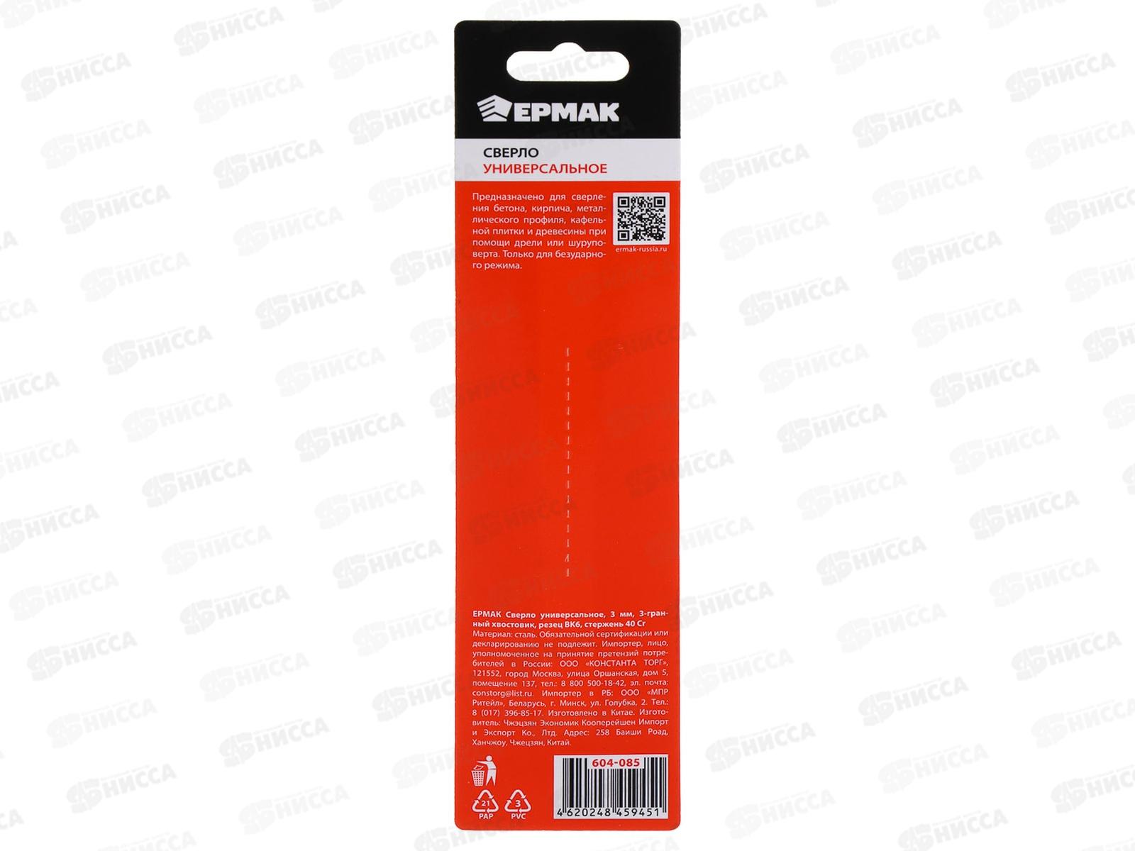 Сверло унив 3мм 3х гранный хвостик Ермак 604-085 г