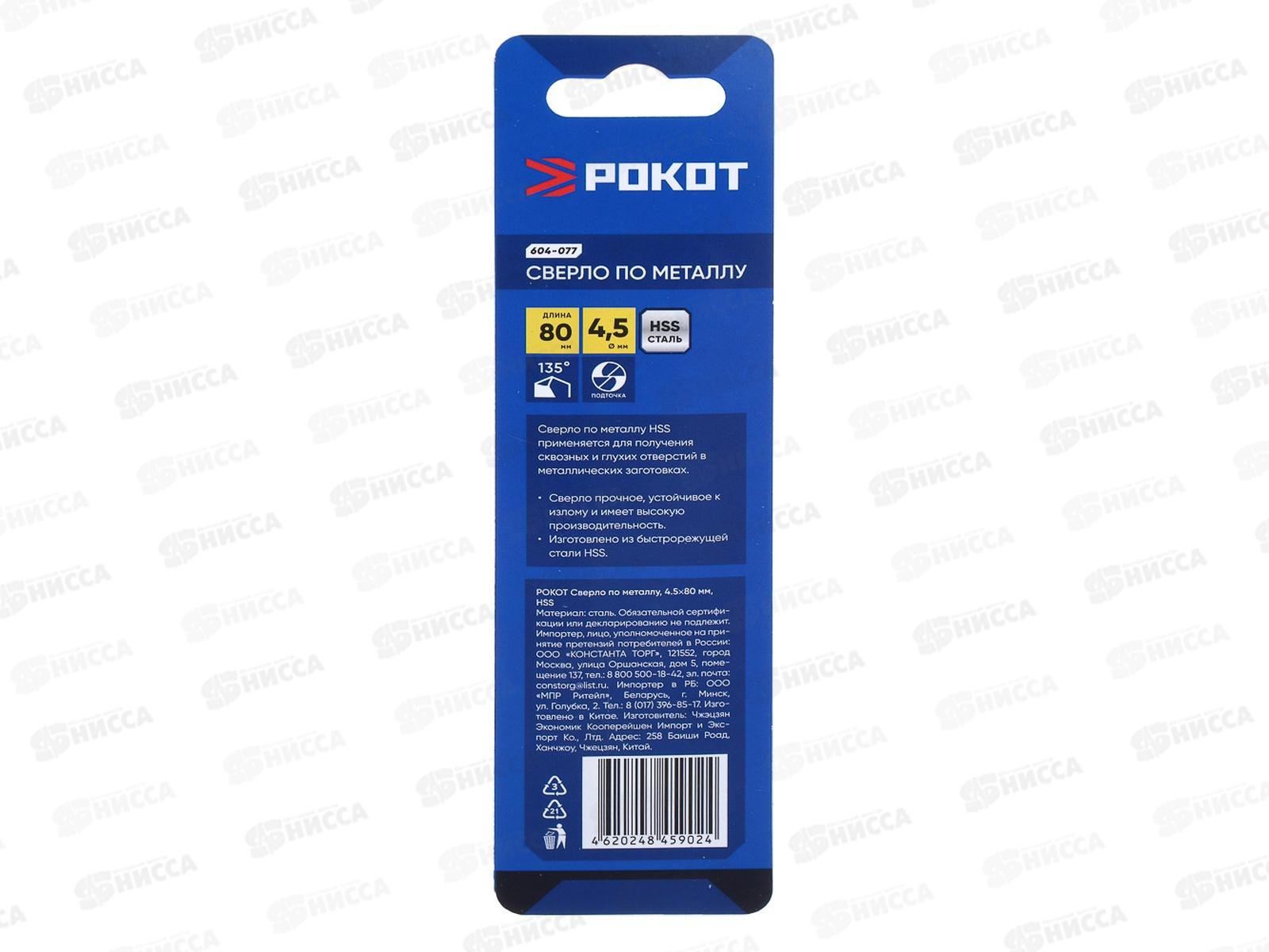 Сверло п/металлу 4,5*80мм РОКОТ 604-077 г