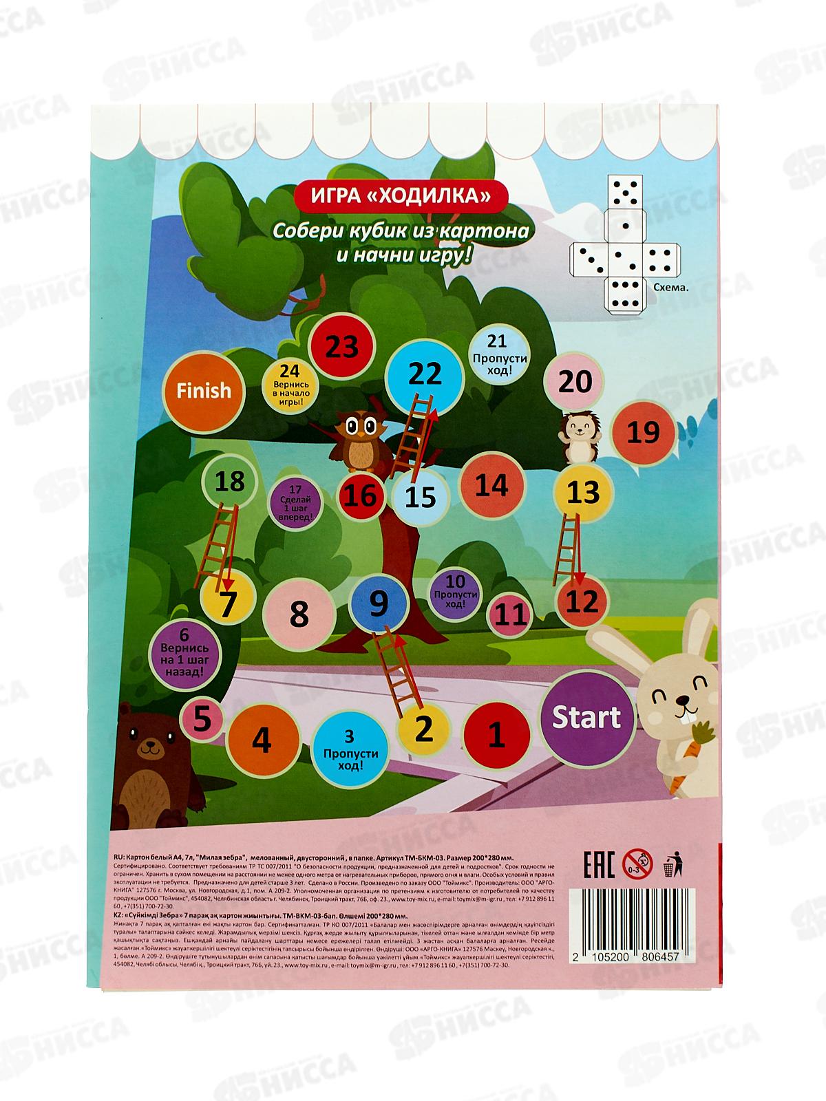 Картон Белый 7л А4 "Милая зебра" мелов., двустор. ТМ-БКМ-03