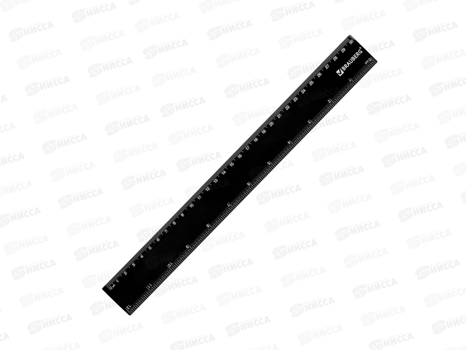 Линейка 30см BRAU черная, пластик, 210837 *24/96