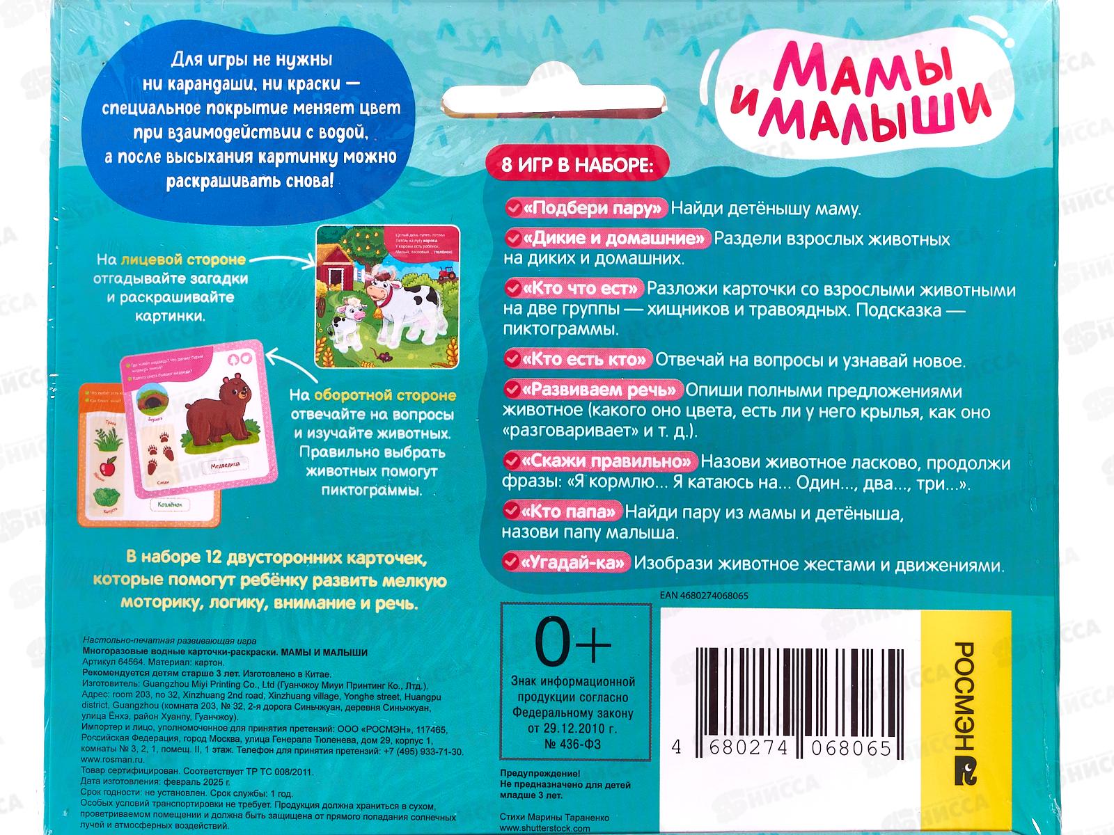 Карточки-раскраски Росмэн водные Мамы и малыши 64564