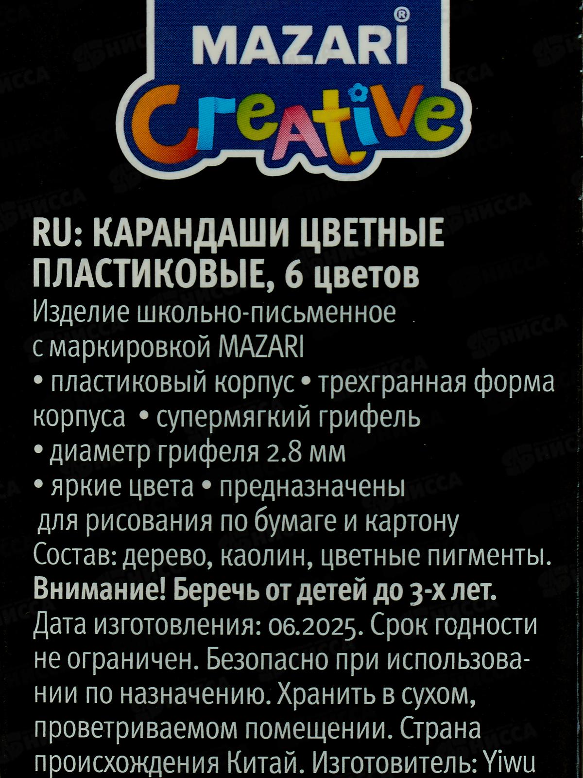 Карандаши 6цв MAZARI мягкие M-7095-6 *12/240