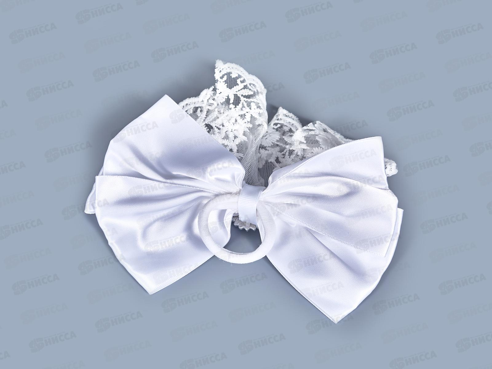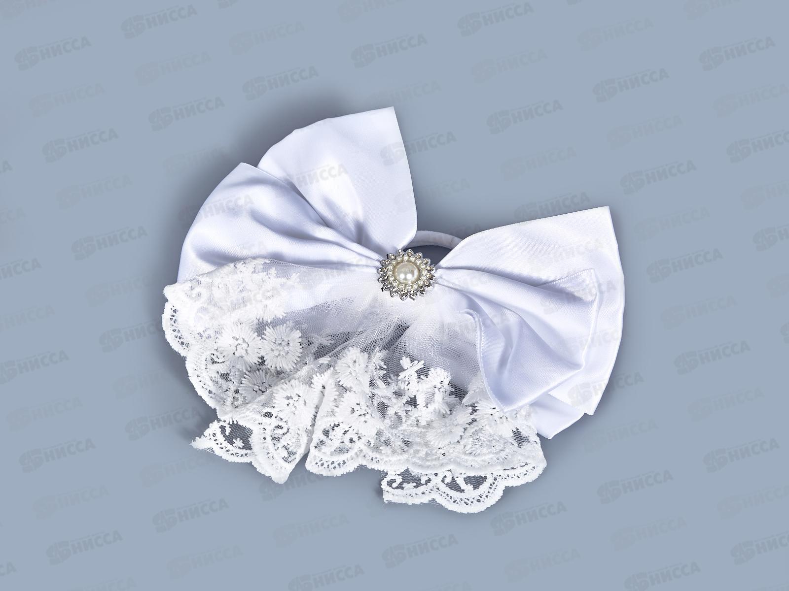 Бант гипюр шелк жемчуг стразы белый 16см №7925