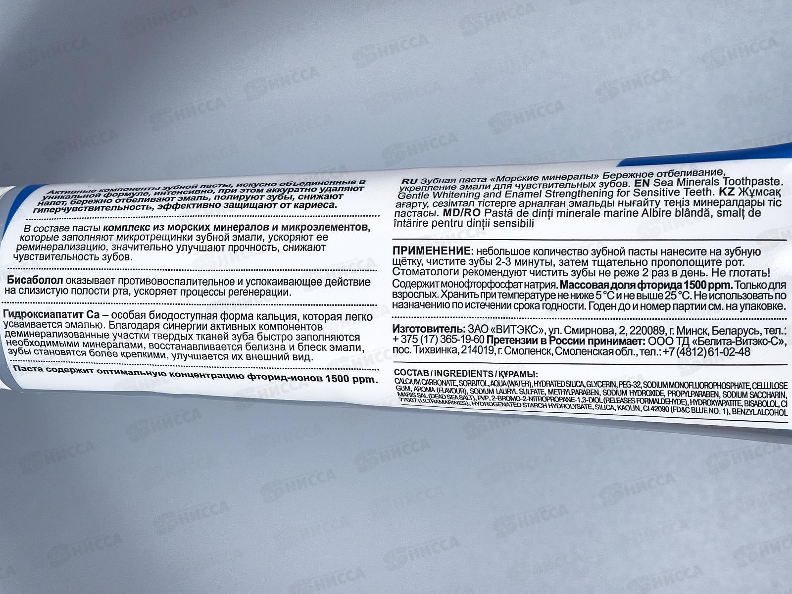 Комплекс минералов Мертвого моря, активный фтор и кальций укрепляют десны и защищают от кариеса эмаль и оголенную часть корня зуба. Натуральная чистящая основа мягко и эффективно удаляет зубной налет. Состав: Вода, карбонат кальция, сорбитол, гидратированный диоксид кремния, ПЭГ-8, глицерин, лаурилсульфат натрия, целлюлозная камедь, монофторфосфат натрия, ароматизатор, метилпарабен, соль Мёртвого моря, сахаринат натрия, пропилпарабен, CI 42090, CI 47005.