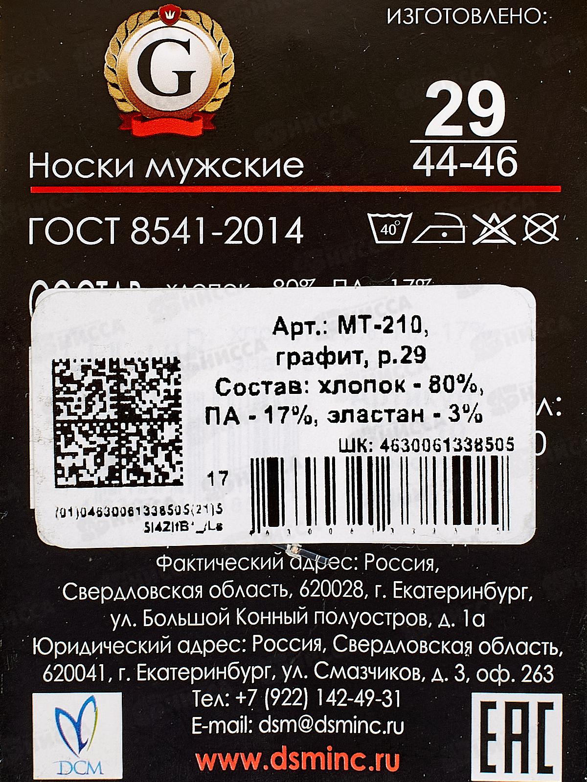 Носки муж МТ-210 GRAND LINE махра графит р-29
