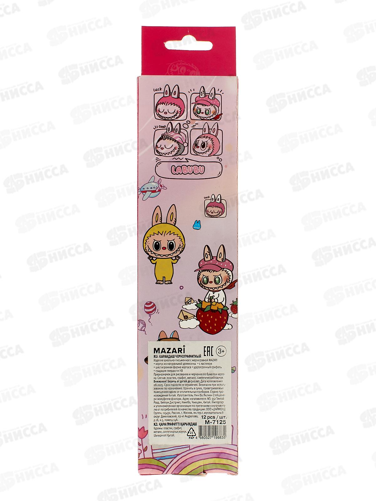 Карандаш ч/г с ласт. MAZARI Зубастик HB, дерев. шестигран. M-7125*12/144