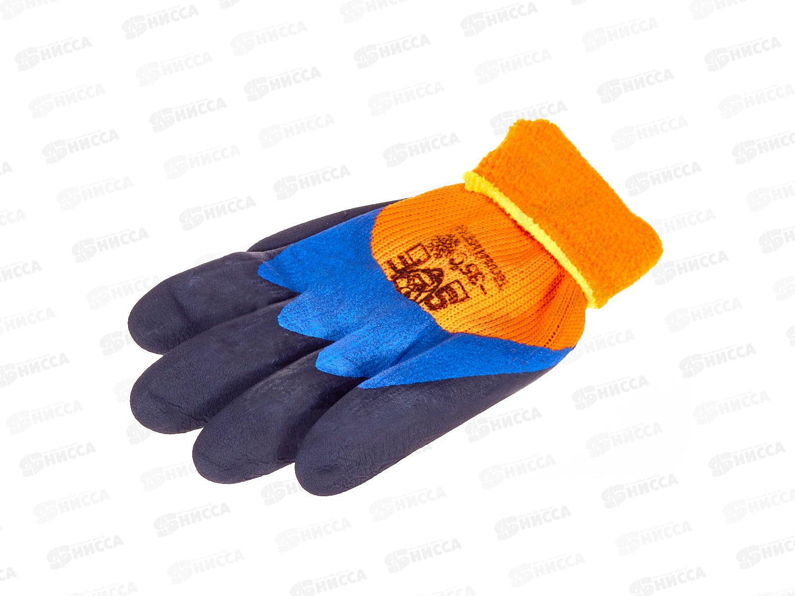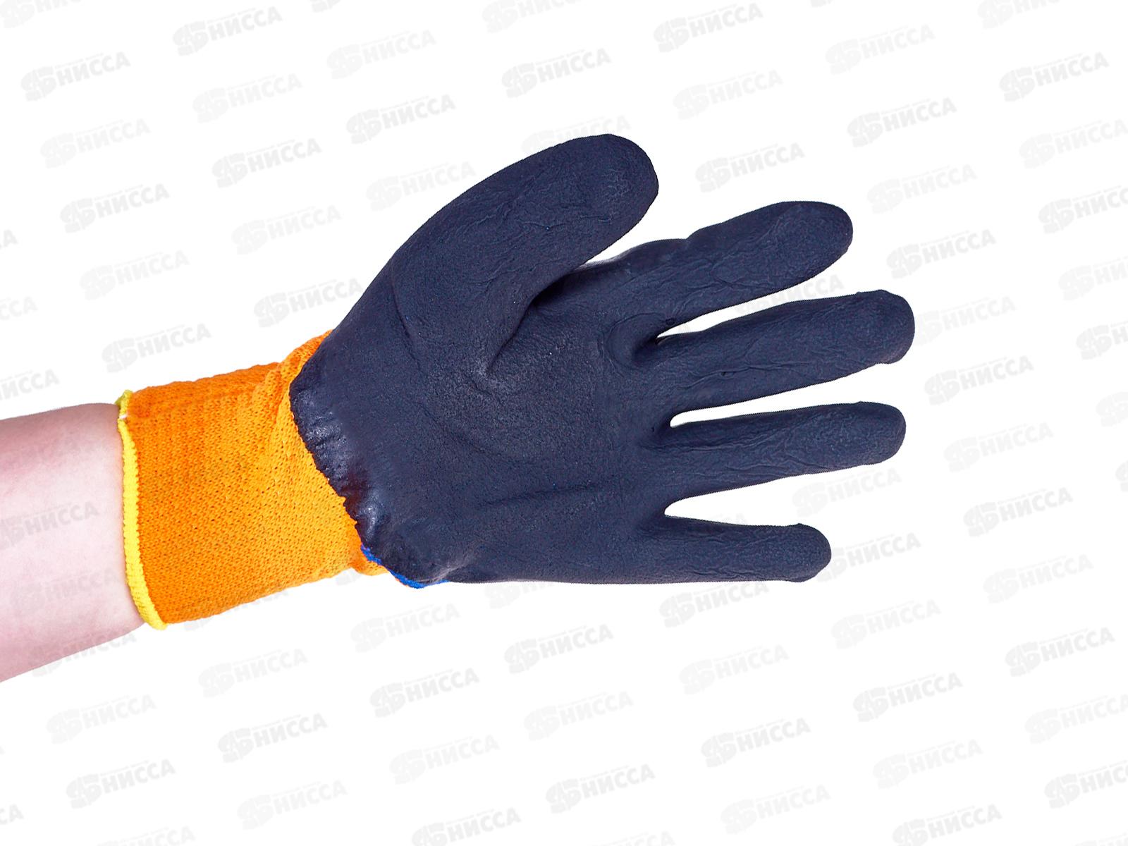 Перчатки хлопчатобумажные облитые Зима Торро Люкс двойной облив оранж с синим черные пальцы №289 *10/480